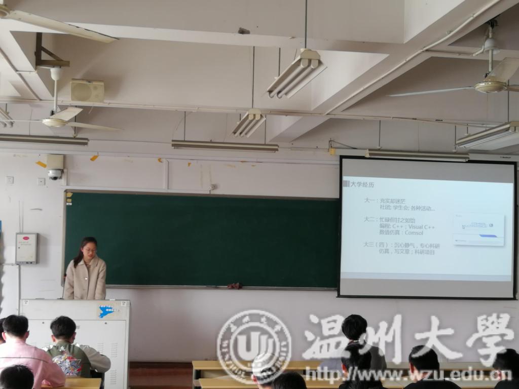 交流会伊始,龚玲艳同学进行自己大学生活及学习的分享。她以真实的经历,告诉大家如何将大学生活过得更有意义、更充实,并推荐给大家一些实用的学习英语书籍与软件。她以自己寒假背完3000个单词为例,与大家分享了如何合理利用时间背单词的诀窍。作为一名发表的3篇SCI论文的学姐,她当然也和大家分享了如何写出一篇好论文,这当中少不了她不屑的努力和精益求精的耐心与专业精神。同学们听完讲座都受益匪浅,还向学姐咨询学习上的一些问题,进行积极地交流。