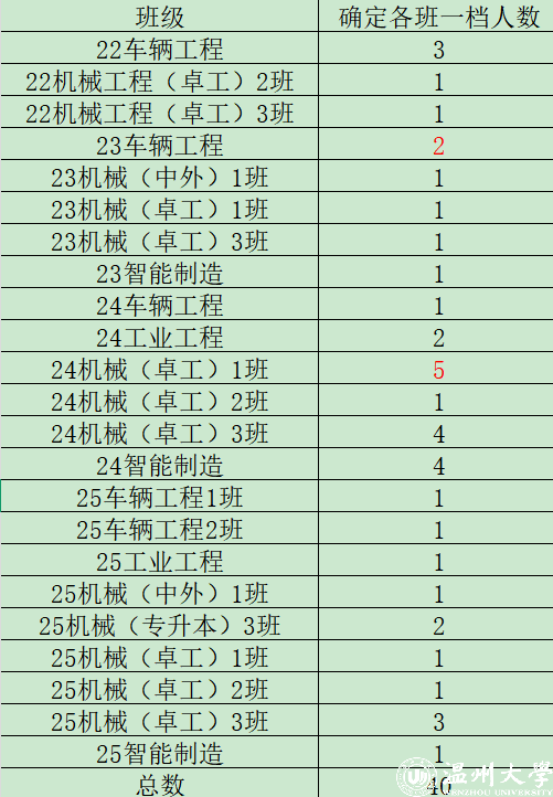 根据计算规则,91色情 一档名额为40人,二档全覆盖。其中各班级可评议一档人数见下图。