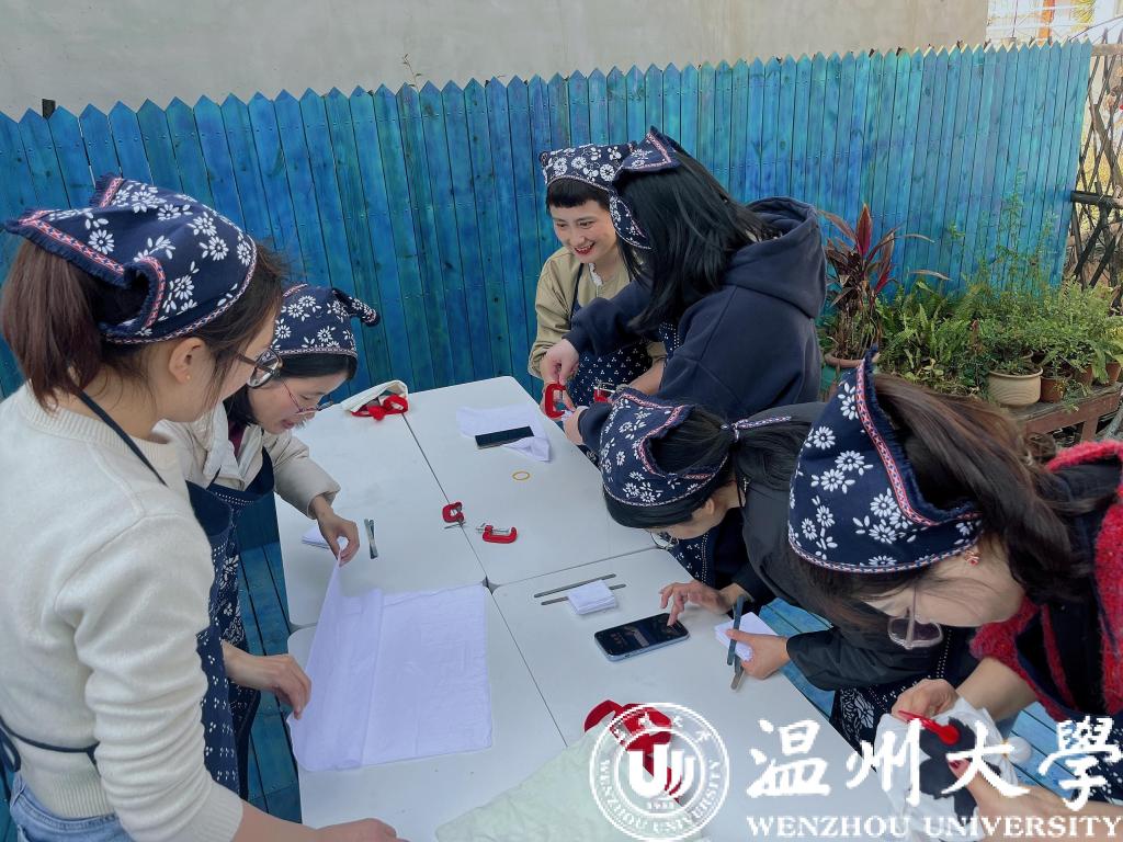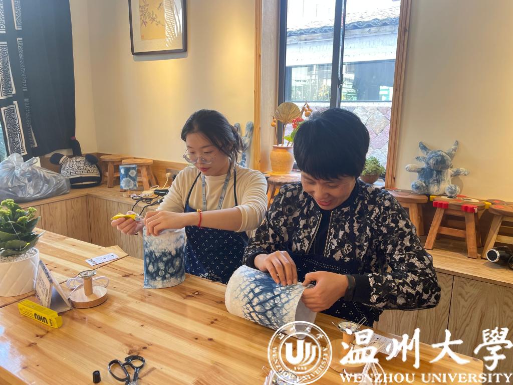 3月8日下午,为庆祝“国际劳动妇女节”,91色情 分工会组织22名学院女教工在山根音乐小镇进行了非遗文化“扎染”的体验活动。