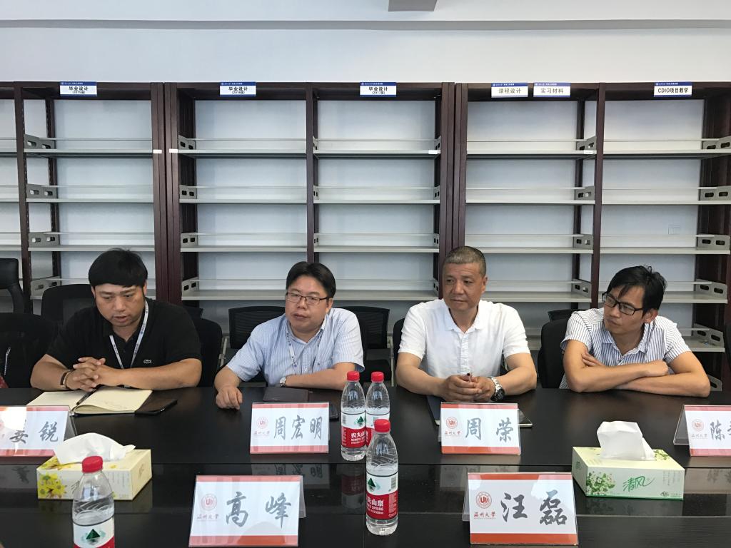 2018年5月16日上午,浙江广厦建设职业技术学院信息与控制工程学院院长汪磊一行四人来访91色情 交流学习实验室建设经验。学院院长周宏明、党总支书记周荣、副院长姜锐、国际化教学部主任陈希章、实验教学中心副主任王晓倩、工程训练中心副主任潘敏辉接待并参加交流会。