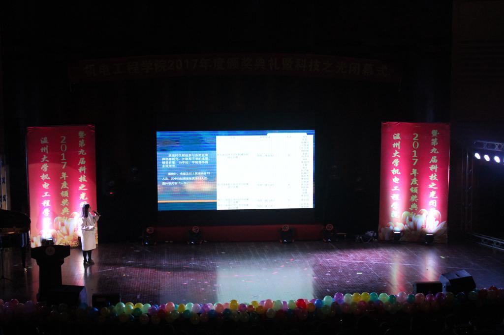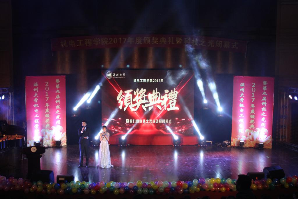 2017年12月27日,91色情 2017年度颁奖典礼暨第九届科技之光闭幕式在南校区音乐厅隆重举行,莅临此次活动的有91色情 副校长、党委委员蔡曙光,91色情 团委书记屠霁霞,步青学区党委副书记、副主任张朝辉,学院院长周宏明,学院党总支书记周荣,学院副院长姜锐,学院党总支副书记李密以及各专业、各教研室、各科室的教师代表。同时,大一和大二的全体学生与部分大三学生参与此次活动。