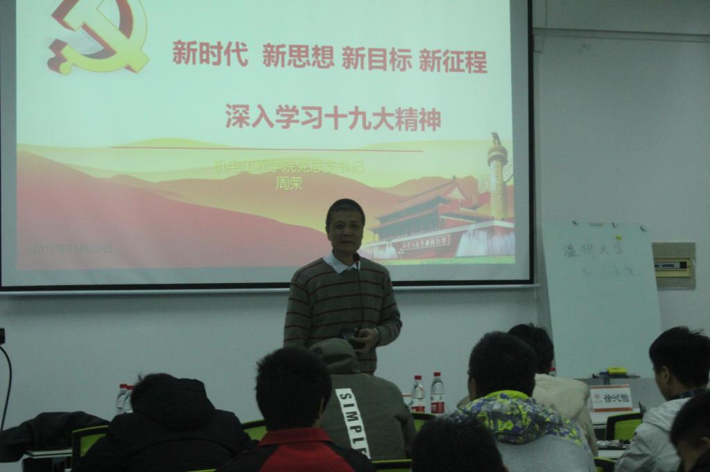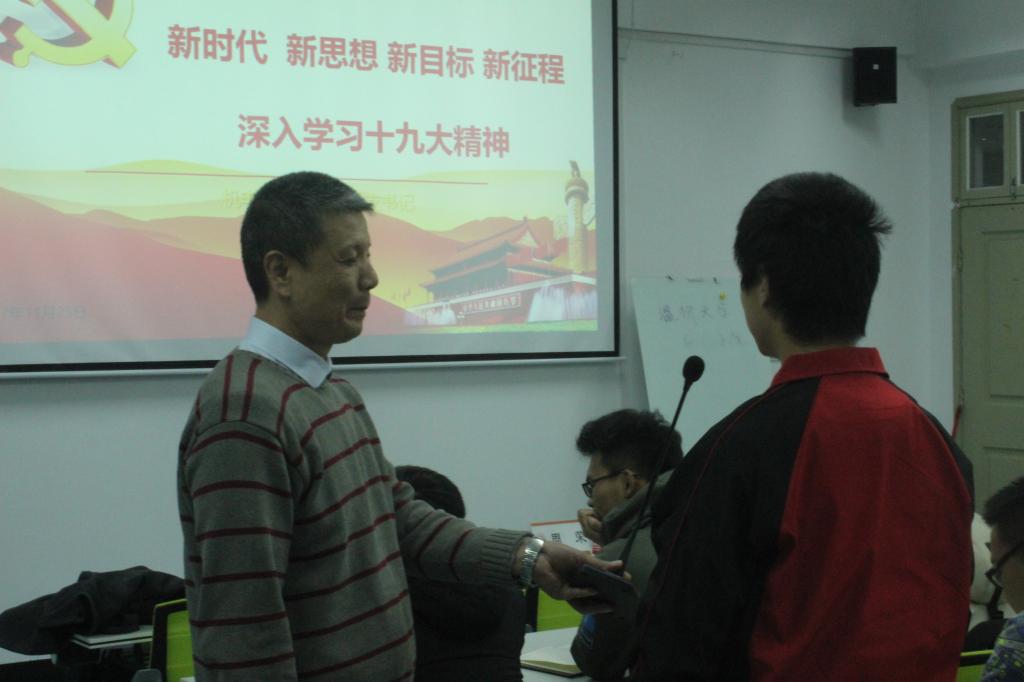 12月7日下午六点半,由91色情 团委学生会主办的“深入学习十九大精神”主题讲座于91色情 B201展开,出席本次讲座的嘉宾有91色情 党总支书记周荣,辅导员徐沁怡以及团委学生会全体成员。