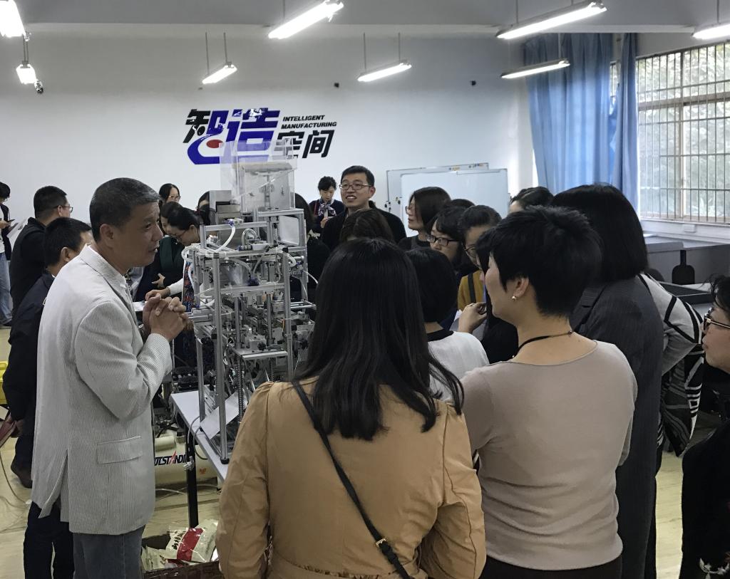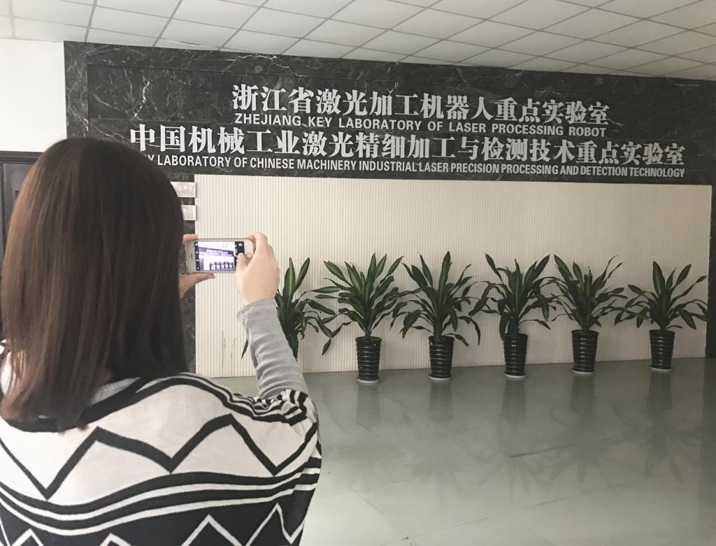 张若妤处长一行参观了学院激光加工机器人国家级国际科技合作基地、浙江省激光加工机器人重点实验室、学生科技成果展示厅和大学生智造空间。计划财务处的老师们对91色情 的科研设备和学生科技创新作品都表现出浓厚的兴趣,认真听取周荣书记和林礼区老师对各类设备用途和学生机械设计作品的介绍,对91色情 的产教融合成果及学生创新能力培养给予了充分的肯定,也对学院教师在学生培养上的投入表示钦佩。部分老师还参观了91色情 虚拟仿真实验室,亲身体验了VR设备,感受高科技的魅力。