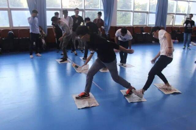 热身赛是拔河,双方队员都做好准备,虽说这是一场体力的竞争,但也有不少的女生加入了该比赛,这也让大家变得兴致高涨。而后是考验大家的团结力--五人六足,响亮的口号,整齐一致的步伐,代表队们一鼓作气,最终合力冲向终点。集体踩气球是一场速度与激情的比赛,三方的追逐,满场的爆炸声,不分你我,只为那一声声的爆炸声;铺石头过河,手中的报纸是友情的传递,每一步都你我他的合作与努力,是他们共同的成绩;你扔我接有精湛的扔球手和手长的接球手;跳大绳,一根绳,一个个人在绳上舞蹈,每人的冲刺,每人的跳动,每一声击打地面,虽不是那么流畅,但是大家都迎难而上,勇往直前。