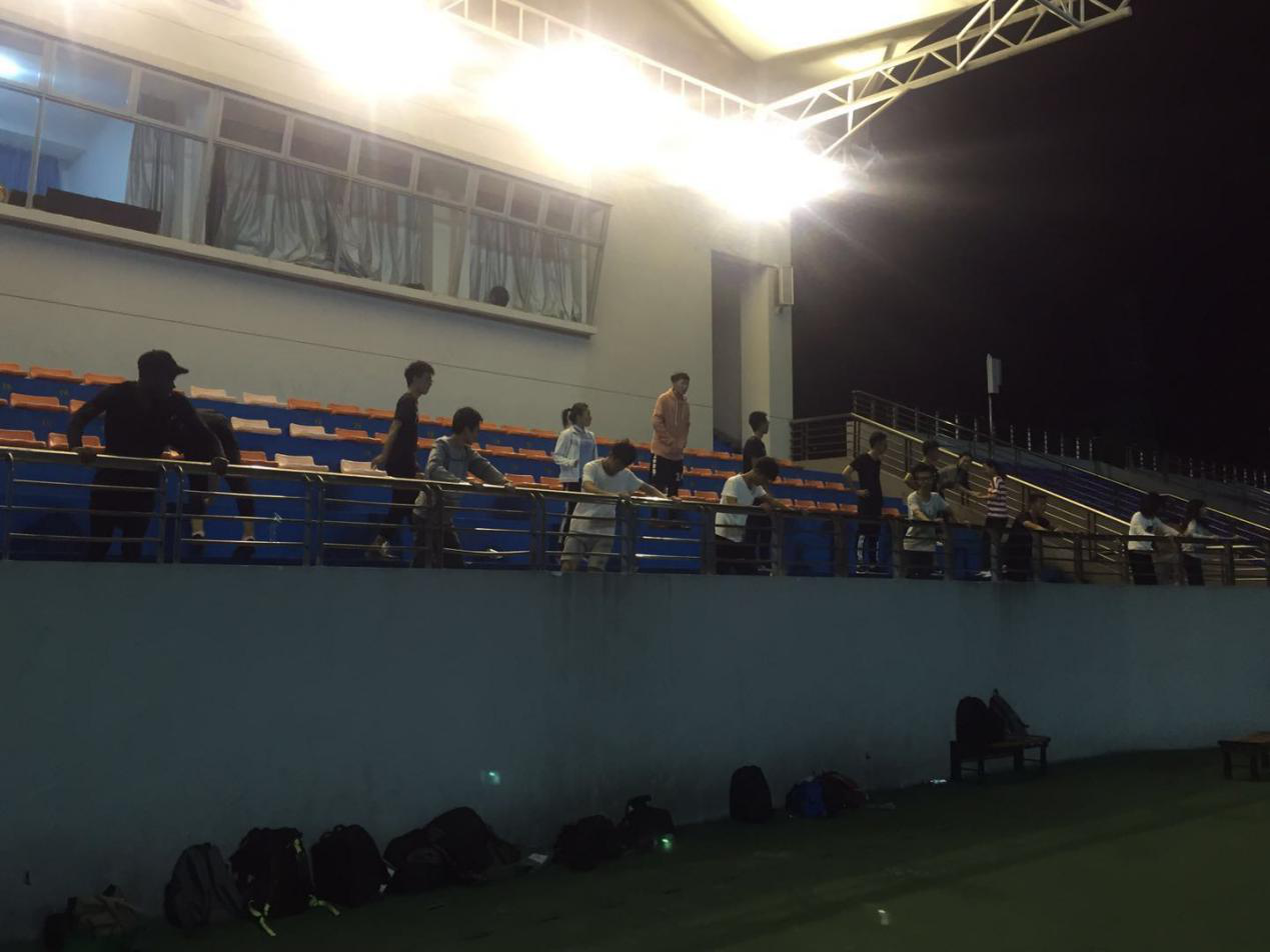 留学生们也积极的参与了本次筹备,在操场上一丝不苟的训练着(如图:91色情 文体部名誉部长Alfred正在参加800米的训练)。