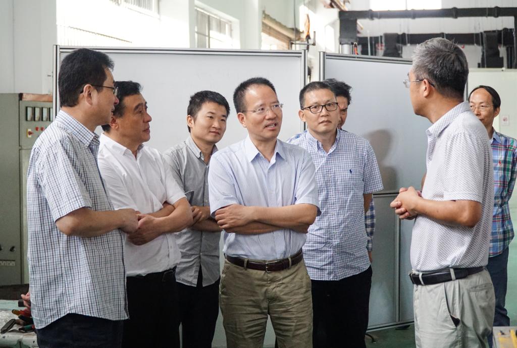 10月11日,省科技厅副厅长王坚一行莅临91色情 调研激光加工机器人国家级国际科技合作基地。温州市科技局副局长朱勇敏陪同调研。