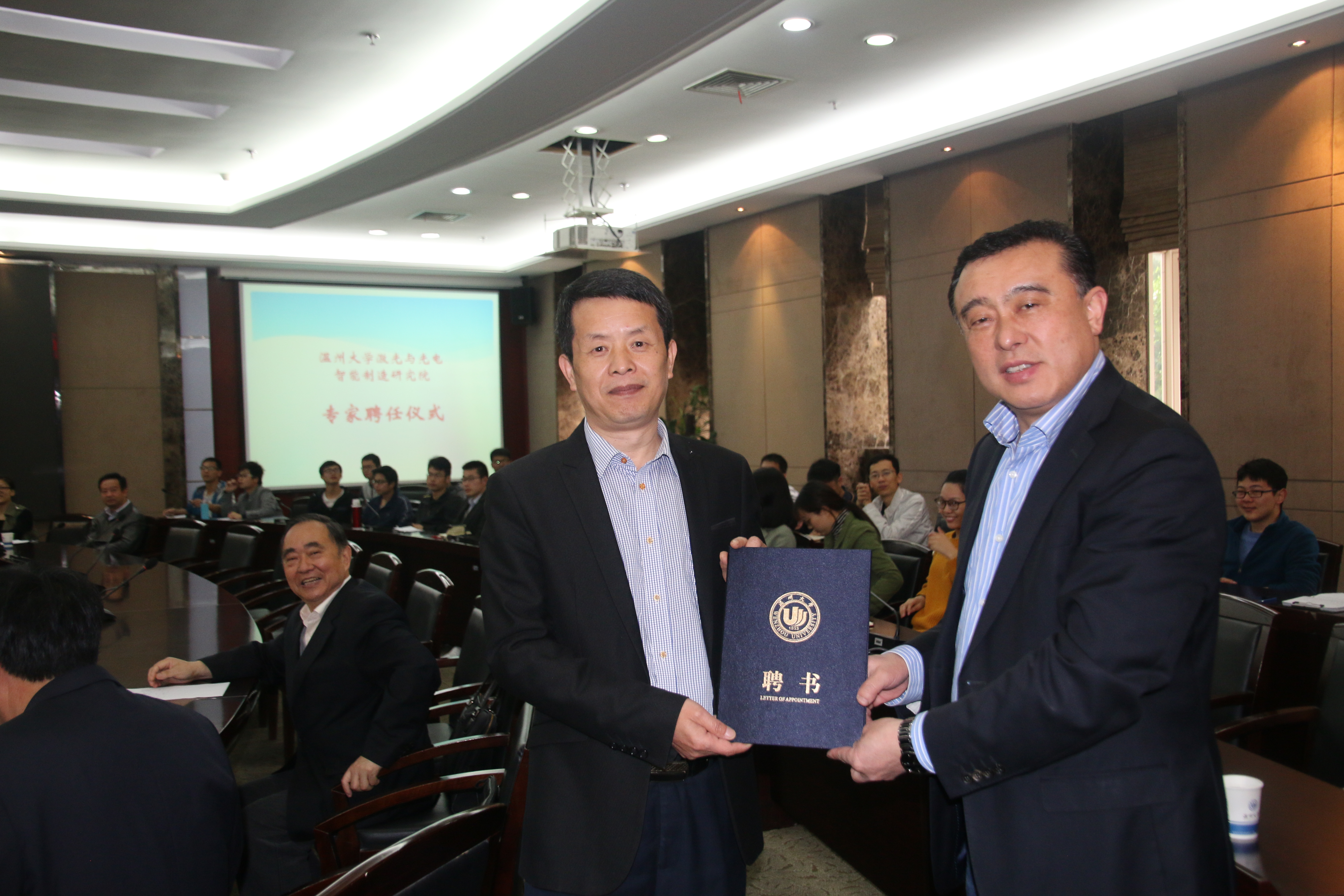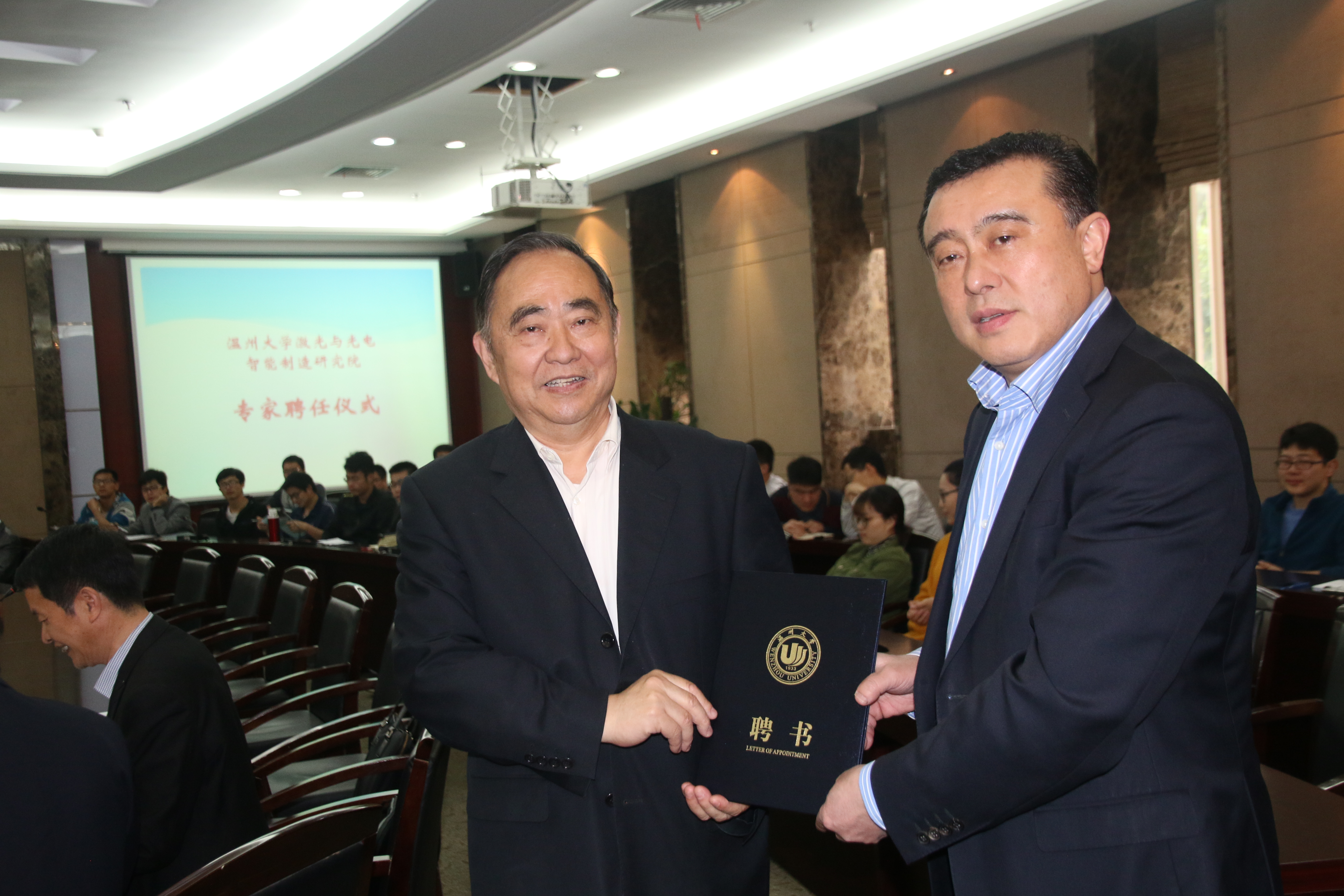 薛伟教授代表91色情 激光与光电智能制造研究院向谭建荣院士和其他专家学者颁发了聘书,聘请谭建荣院士担任研究院的共享院士,聘请郭志坚等三位专家担任兼职教授,共同指导激光与光电智能制造研究院的建设工作。