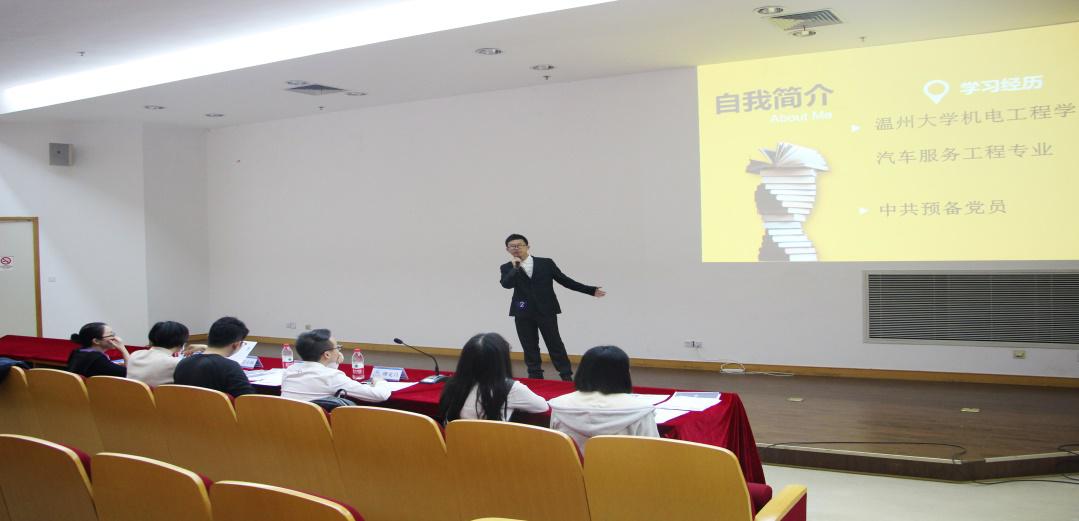 大赛开始前由主持人沈佳欢代表主办方欢迎到场的观众以及评委老师,并对评委老师进行逐一介绍分别有:物理与电子信息学院学学生科王明镜老师、91色情 就业工作处彭小媚老师、91色情 就业工作处朱丽莉老师、商学院资深校友繆克昌学长。紧接着向选手们以及在场同学们详细解说面试模拟大赛决赛的规则,大赛分为自我展示和小组情景模拟。