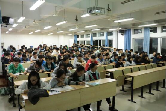 在讲座中,黄继宝学长用流畅又发人省醒的话语赢得了同学们热情的掌声。讲座伊始,他以他的大学生活为引,详细地讲述了他从大学过渡到工作的经历,同学们全神贯注地听着,就如同在亲历这一段人生。而在之后的讲话中,学长又以多位自己亲友的成功经历,讲述了这样一个道理:要成功先发疯,闭着眼睛向前冲。同学们的眼神也越发坚定起来,有了自己的想法与目标。