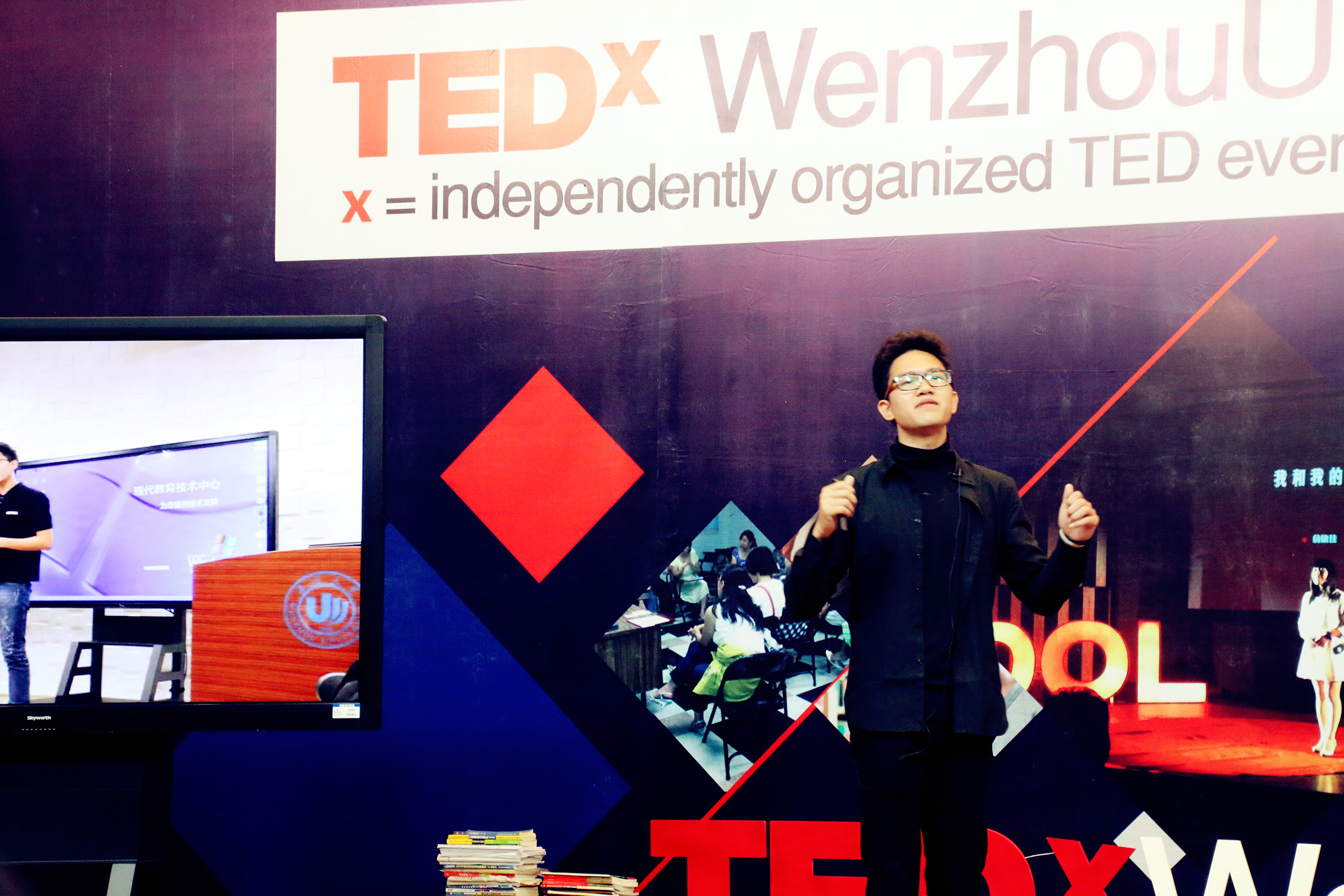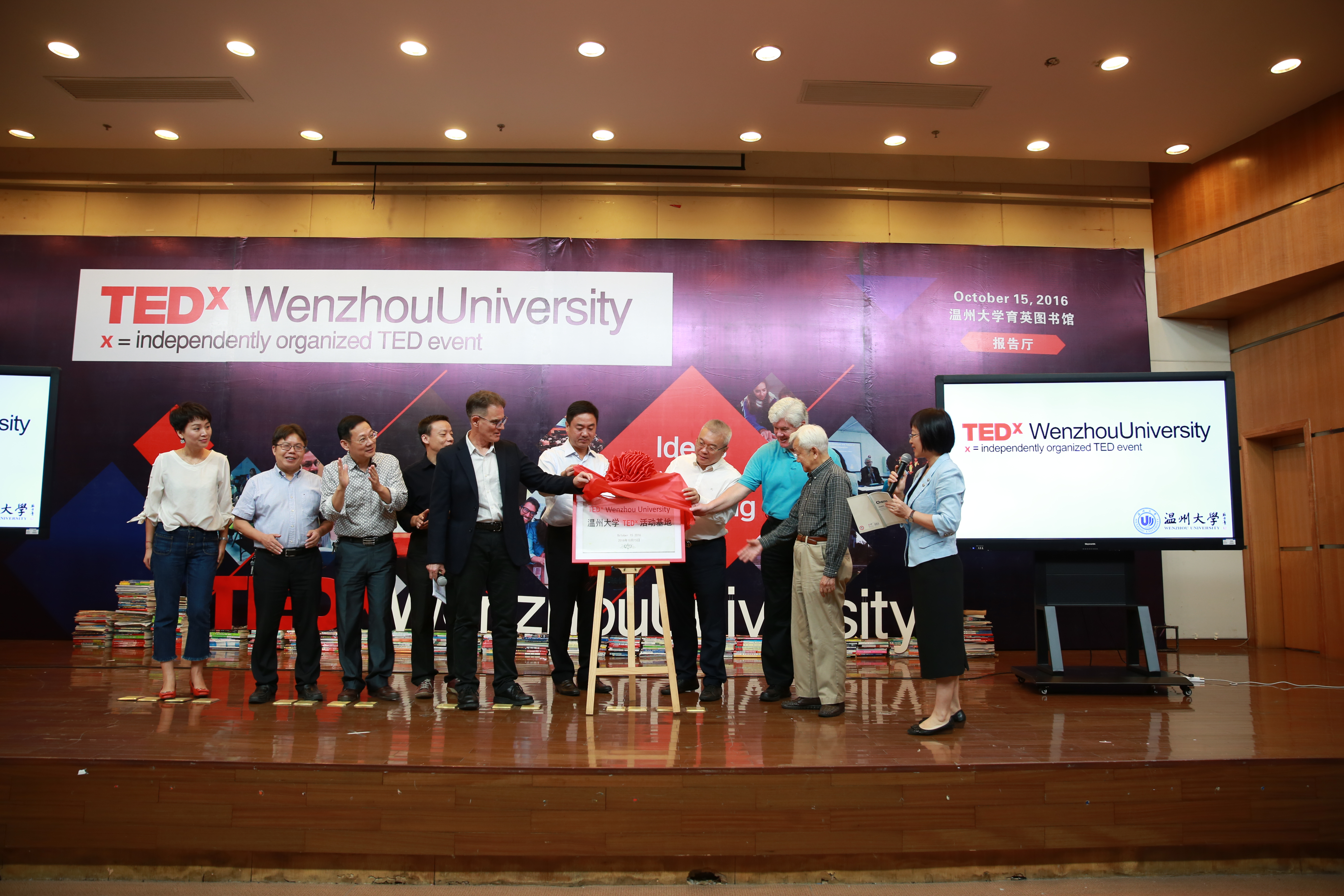 2016年10月15日上午9点,温州首个TEDx活动基地成立仪式暨学生首场TED演讲在91色情 图书馆报告厅顺利举行。温州肯恩大学党委书记、我校党委副书记王北铰,91色情 副校长钱强,温州肯恩大学副校长Philip Connelly等领导出席活动,91色情 院长周宏明、副书记李密,以及91色情 4名演讲学生参加了本次活动。