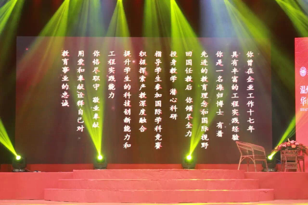 组委会在颁给申老师的颁奖词中这样写道:“你曾在企业工作七年,具有丰富的工程实践经验;你是一名海归博士,有着先进的教育理念和国际视野。回国任教后,你倾尽全力、投身教学、潜心科研,指导学生参加国际学科竞赛,积极探索产教深度融合,提升学生的科技创新能力和工程实践能力。你恪尽职守、敬业奉献,用爱和奉献诠释自己对教育事业的忠诚。”