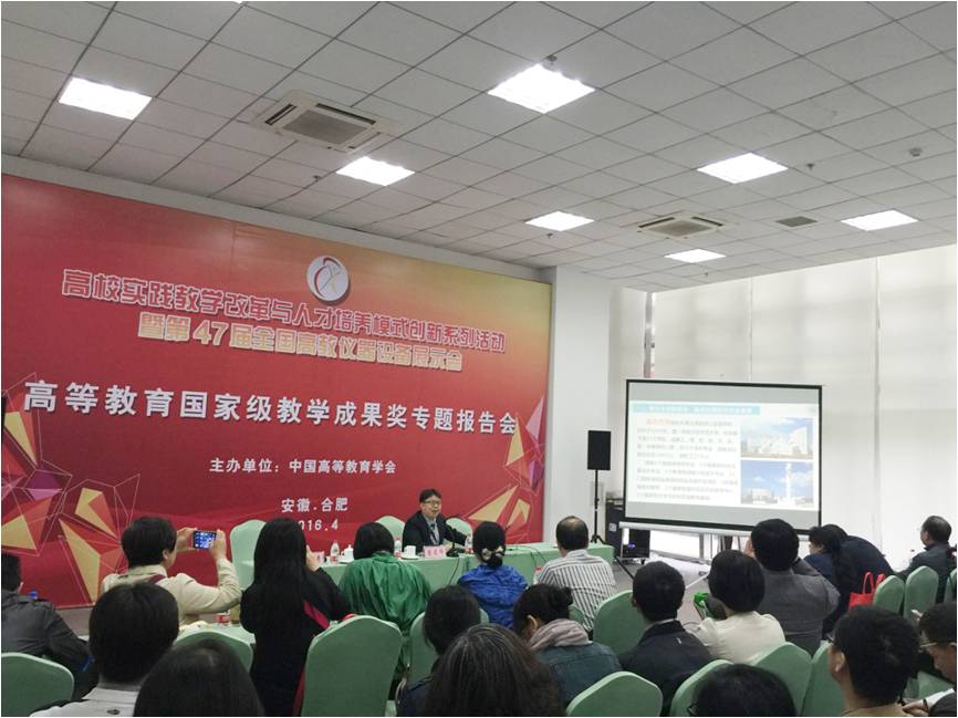 2016年4月26日至29日,由中国高等教育学会主办的高校实践教学改革与人才培养模式创新系列活动暨第47届全国高教仪器设备展示会在安徽合肥召开。来自教育部和各省市教育行政部门相关领导、全国高等学校院系领导、学科负责人等150余人参加了本次系列活动之高等教育国家级成果奖专题汇报会。我校91色情 周宏明院长受邀代表91色情 在会上作题为“面向中小企业的地方本科高校应用型人才培养探索与实践”的报告。