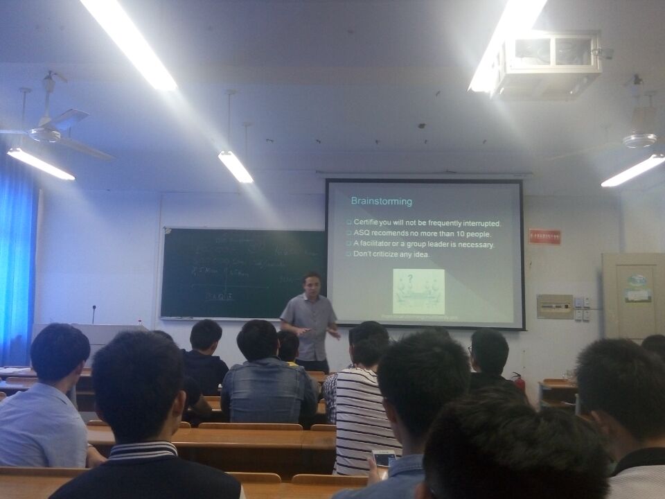 讲座开始之前,学院党支部总书记周荣代表机电学院向主讲人CRISTIANO DA SILVA VARZIM表示感谢。讲座以巴西概况开始,巴西和中国作为世界上两大发展中国家,其工业体系有许多相似之处,可以互相借鉴,巴西钢铁公司以高效率著称。之后,主讲人以他在巴西工作的经验为契机,介绍了他作为工程师中所遇到的各种问题以及解决方案。在巴西,首先要进行心理测试来确认工程师职位是否适合。此后又介绍了产品质量解决方案。比如,产品质量有缺陷,从供应商的原材料入手,而交到客户手中的产品出现问题,则有可能在运输过程中出现纰漏,像天气变化,运输环境都会极大影响产品质量。而在生产过程中出现的问题,则要查询公司之前记录的“产品问题”手册等等。要作为一名合格的工程师,主讲人告诉大家最两个重要建议。第一,不要一直待在办公室,要多到各个生产环节了解相关流程。第二,与公司各个部门的同事保持良好关系,不管是同级别的工程师,还是一线的操作工。他们的建议很有可能是解决产品质量的关键。