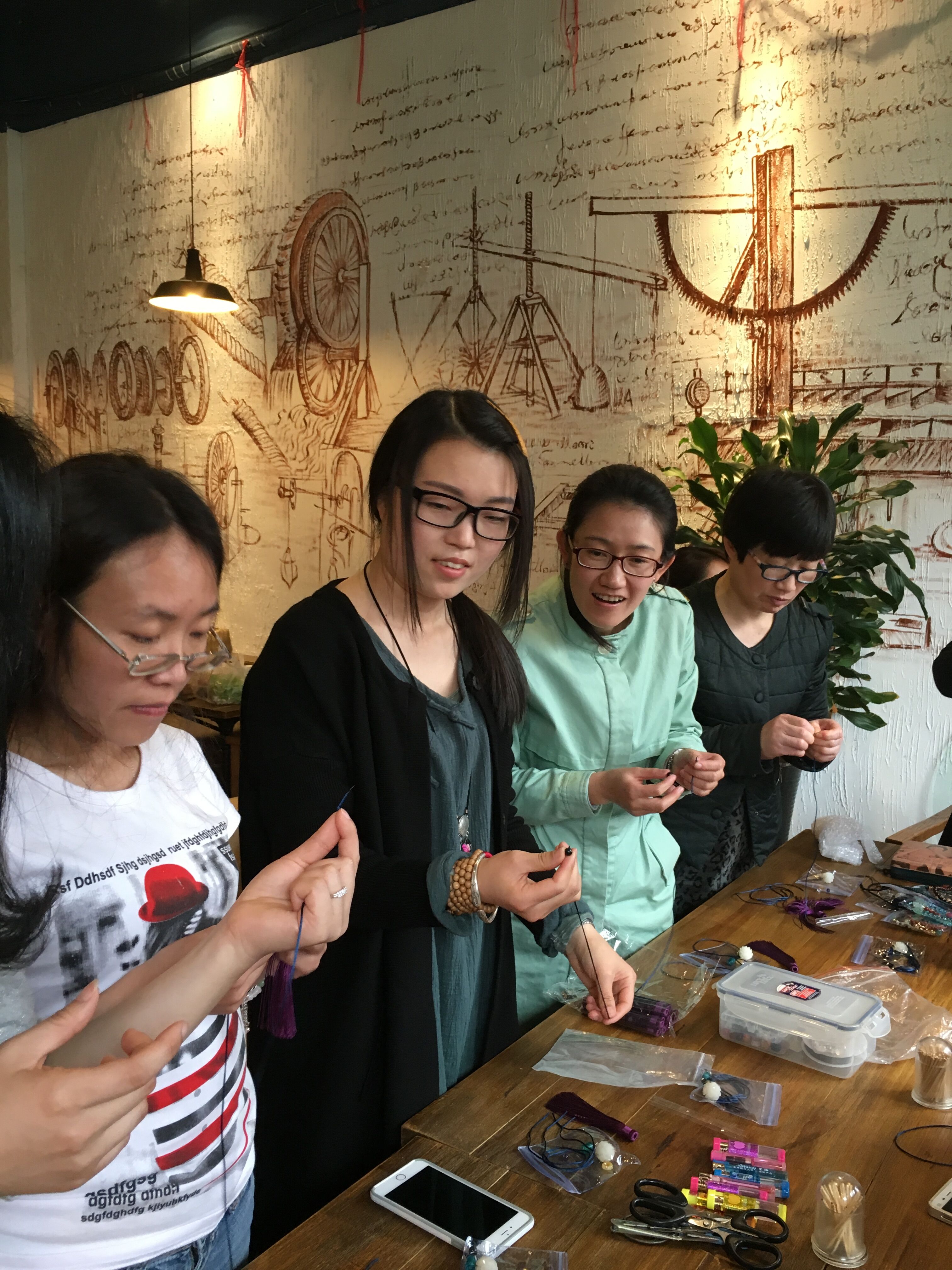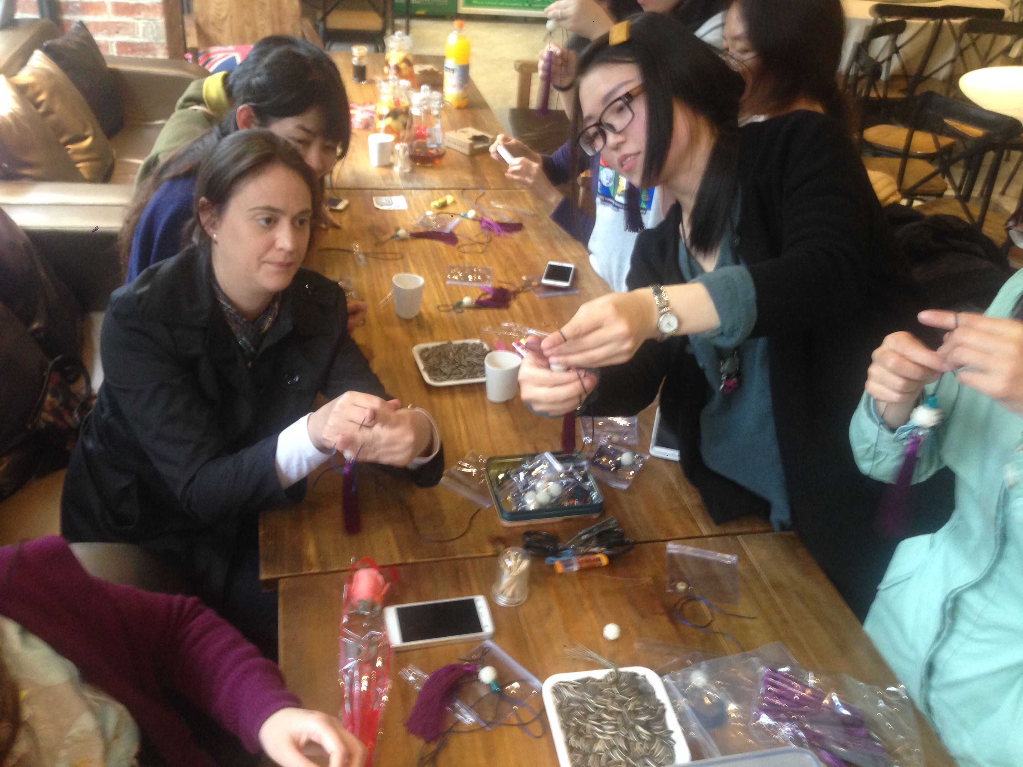 阳春三月,春风送暖,为了庆祝第106个国际“三八”妇女节,丰富91色情 女教工的业余文化活动,3月8日,学院工会组织全院女教工和女外教开展了一场别开生面的编绳串珠DIY活动。在专业老师的指导下,女教工们手下生花,平结、纽扣结、金刚结……将各种漂亮的白水晶、紫水晶和白玉菩提等珠子窜成美丽的手绳、项链和包挂等饰品。大家感觉到满满的成就感,纷纷都说又get了一项新技能。