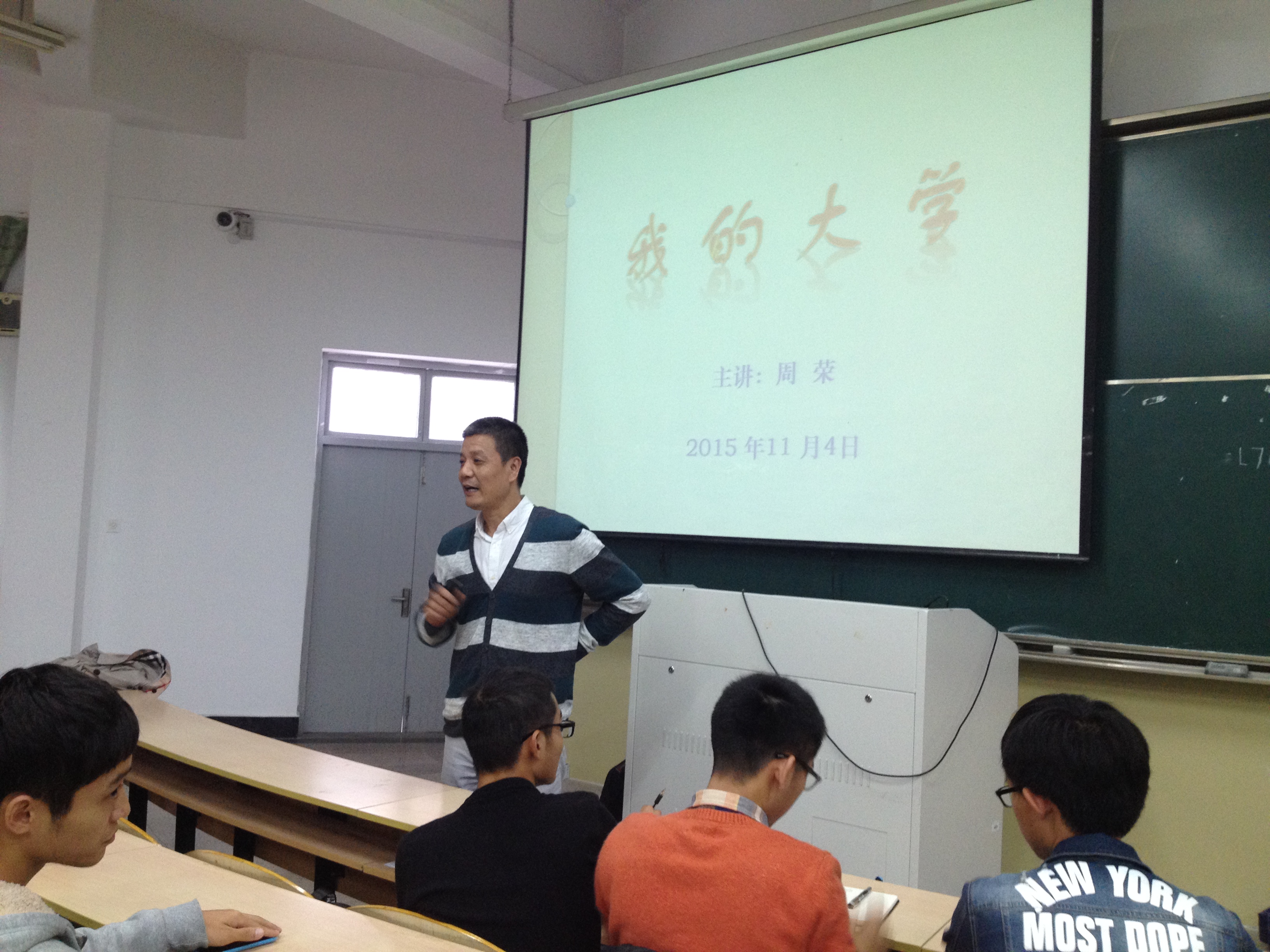 此次讲座,周荣书记从古今中外许多著名的大学以及大学教育的思想的演变开讲,为大一新生介绍了大学的职能------教学,科研,社会服务。书记指出学生在大学中培养的是一种思维模式,以及自主学的能力,同时对大一新生提出了要在大学学习的过程中培养研究学习的能力,培养批判精神以及提出解决问题的方法。周荣书记结合自身经验建议大一新生培养读书的好习惯。同时用马云,北大毕业生卖猪肉等实例告诉大一新生在大学中什么都有可能,应当做好准备迎接挑战。最后,周荣书记为大一新生送上寄语,大学提供学习的平台和环境,是锻炼和展示能力的舞台;专业是大学学习的载体应该通史学习和专业学习相结合;大学培养的是科学的思维和良好的习惯;要学会阅读,学会思考,学会批判,努力探索,勇于创新。