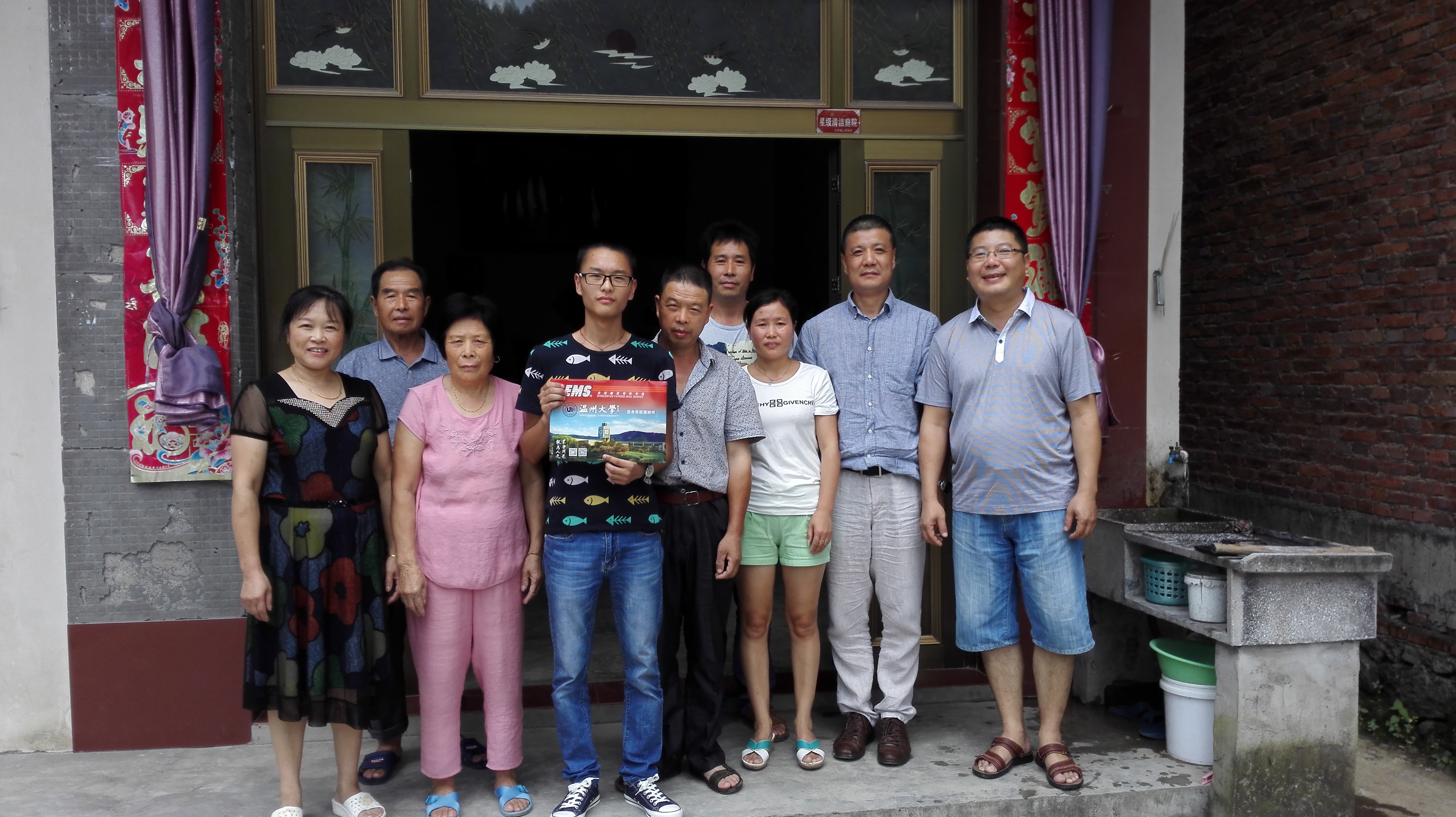 7月25日,周宏明院长、朱德华老师一行前往浙江省武义县,亲自给91色情 2015年录取的卓工班学生朱孜轶、王镇涵送上91色情 录取通知书。同一天,周荣书记、瞿建武老师也出发了,他们辗转一天,赶到建德市大同镇禹甸村考生王忠孝的家,为学生送上了鲜红的录取通知书。对于学院院长书记亲自送录取通知书到家,新生们觉得既意外又兴奋,感受到了学校、学院的浓浓真情。