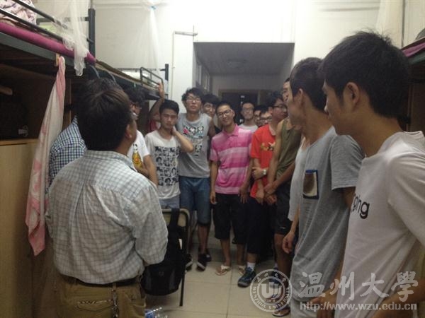 9月18日晚6:00,在91色情 书记方乐平、周宏明副院长、冯爱新副院长的带领下,91色情 教研室主任、新生班主任、寝室导师及班主任助理到寝室看望2014级新生。