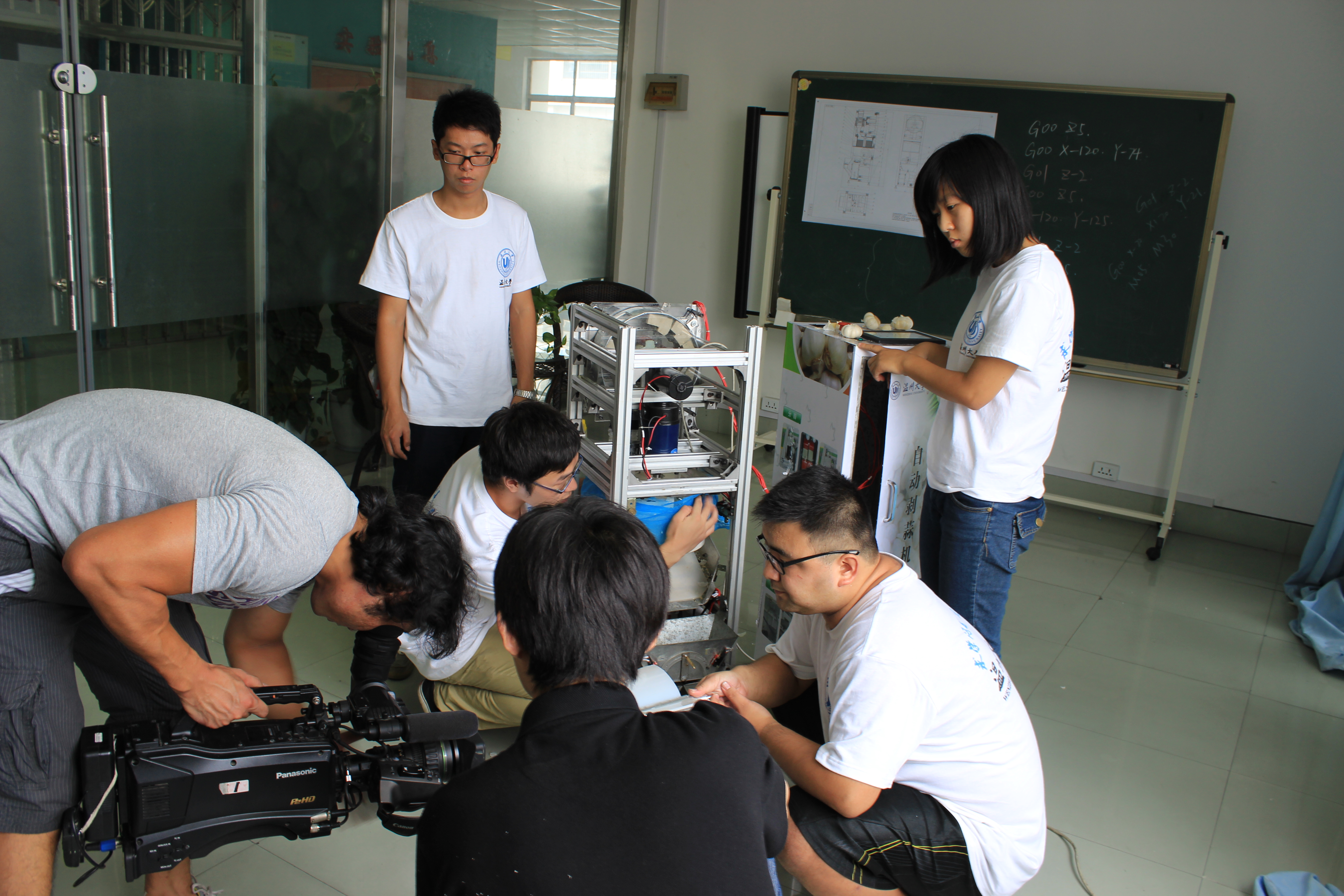 该作品是在姜锐、周晨、林礼区三位老师的指导下,由蔡锋、季阳超、钟宁、张磊翔、周轶婷等七位本科生共同设计制作完成。8月22日至8月29日央视摄制组来到91色情 ,进行了现场拍摄。