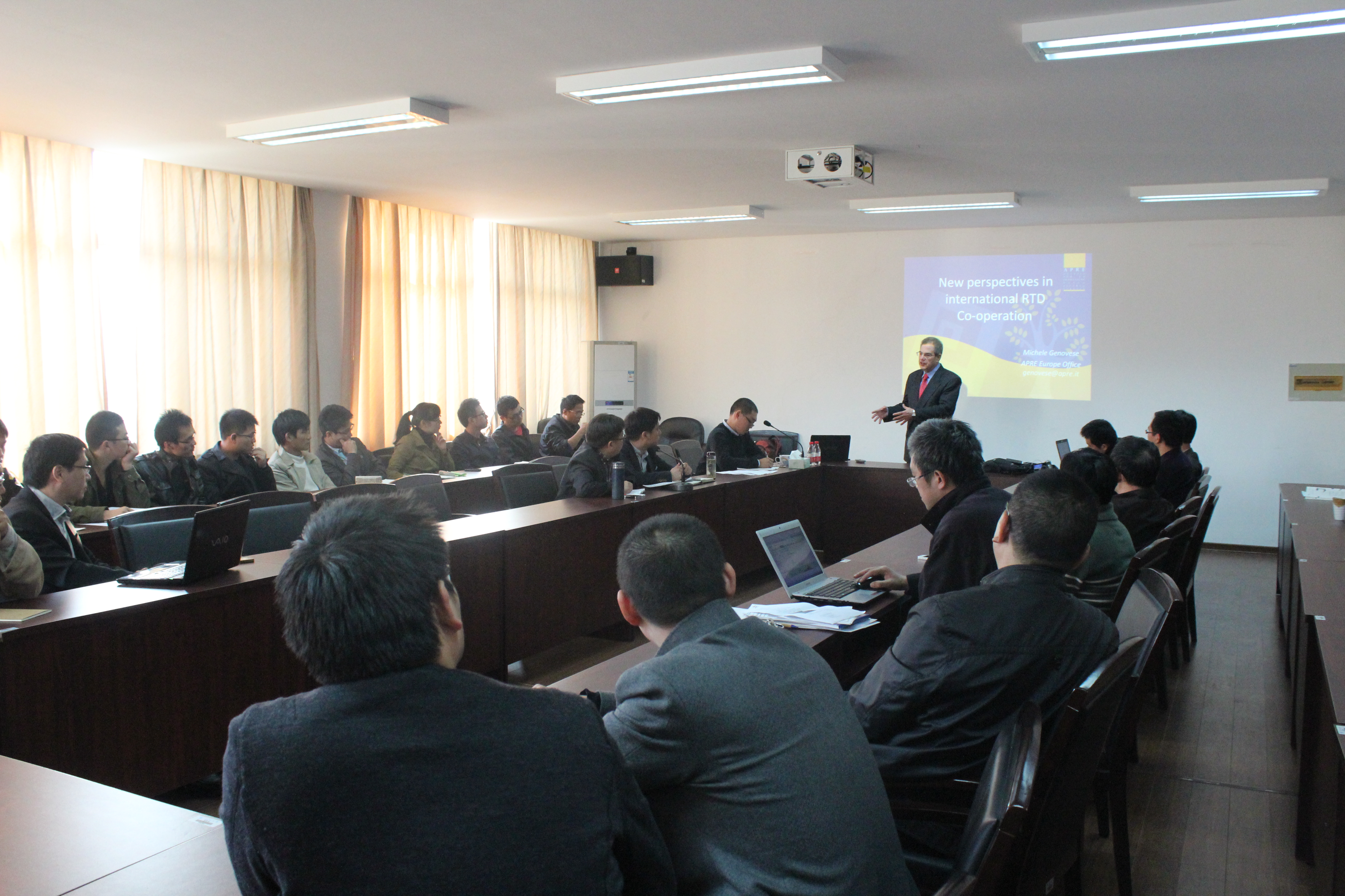 原欧盟DG国际研究合作部主任 Michele Genovese先生应我校激光与光电学科特聘教授冯爱新邀请,于11月19日—22日来我校开展为期4天的国际科技合作和讲学。