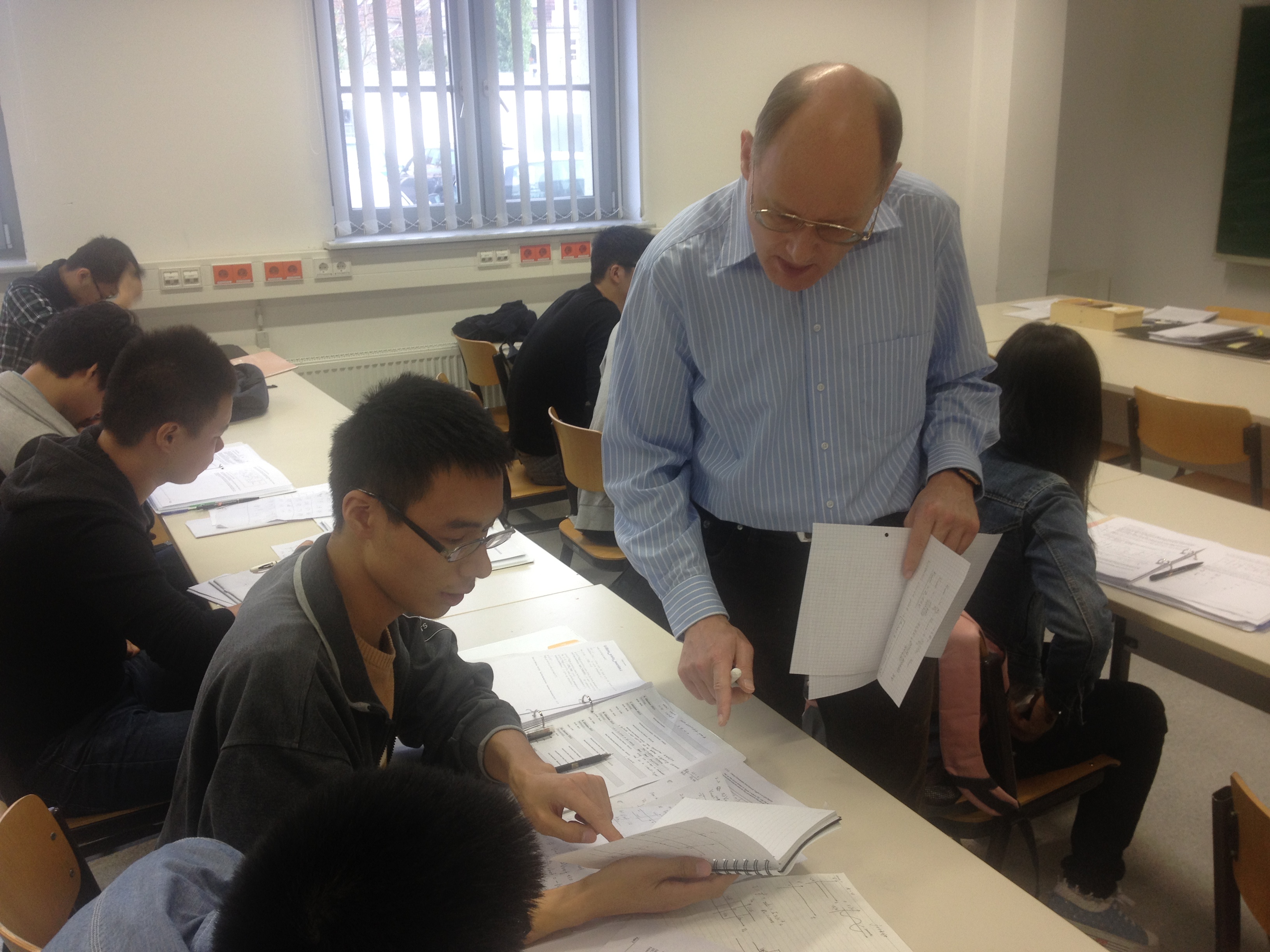 图2 Giesecke教授在“电工电子学”课堂上与同学们交流