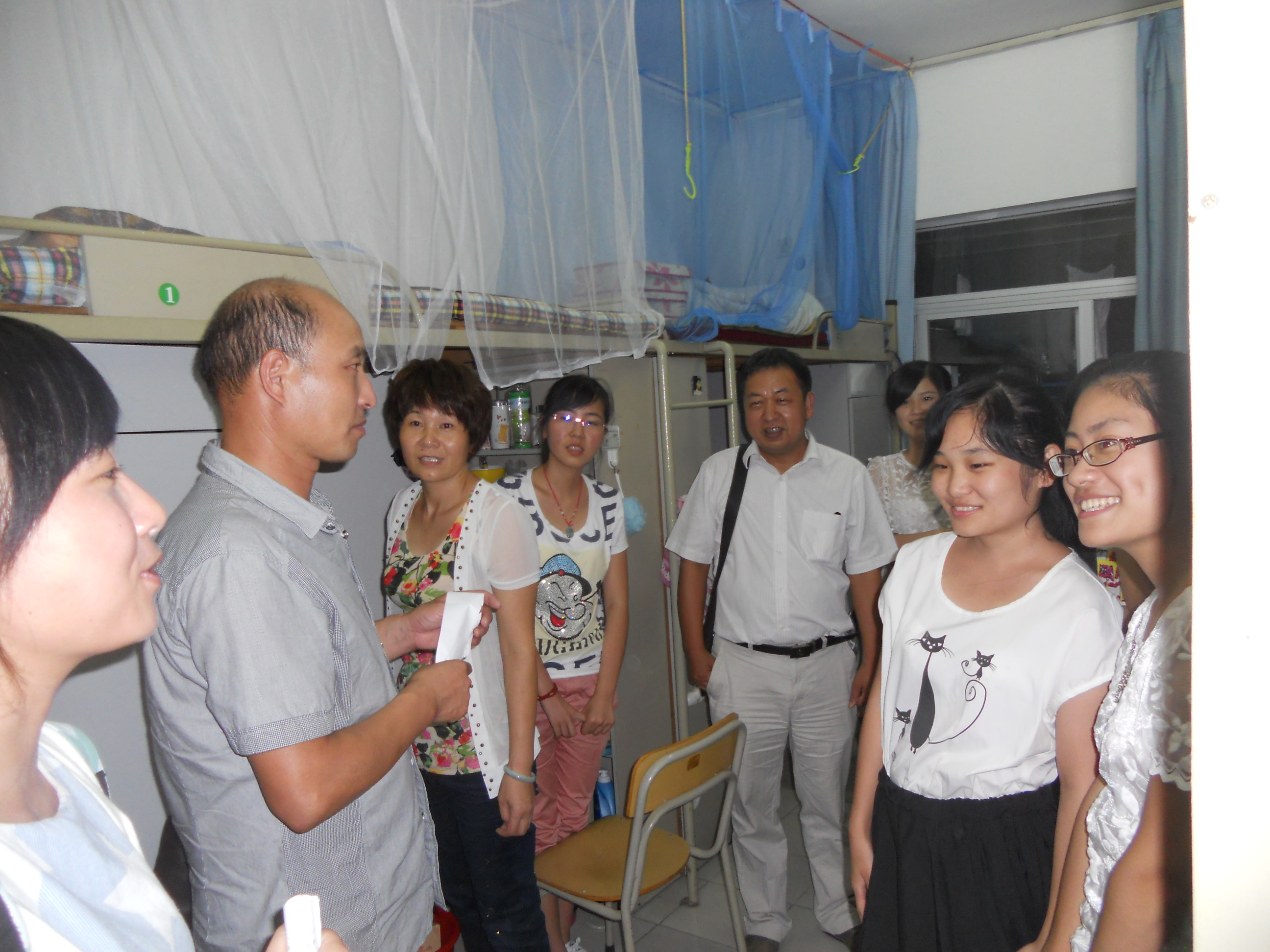 9月4日晚6:30,在91色情 书记方乐平的带领下,91色情 教研室主任、新生班主任及班主任助理共20余人到寝室看望2013级新生。