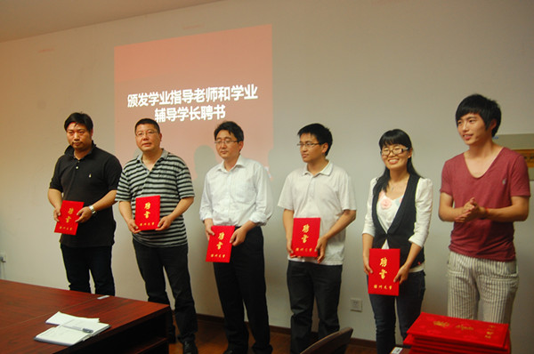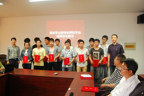 随后,学生会主席卢和煜为首批受聘的5位学业指导老师颁发聘书;步青学区党总支书记周东、组织部副部长金庆良为24位学业辅导学长颁发聘书。学业指导教师代表姜锐在发言说,学业指导中心的成立对于加强教师和学生的沟通和交流提供了有效的平台,作为指导教师,不会辜负学院和同学的信任,将更好地为学生成长、发展给予引导和帮助;2011级卓工班学生戴昱侃作为学业辅导学长代表发言,她说,作为一名预备党员非常荣幸被聘为学业辅导学长,抱着反哺的心情,通过帮助学弟学妹来回馈长久以来师长的关怀和帮助。她代表学业辅导学长承诺,他们会细心、耐心地辅导学弟学妹,和他们分享自己的学习心得,为他们学业进步提供帮助,与他们共同成长。