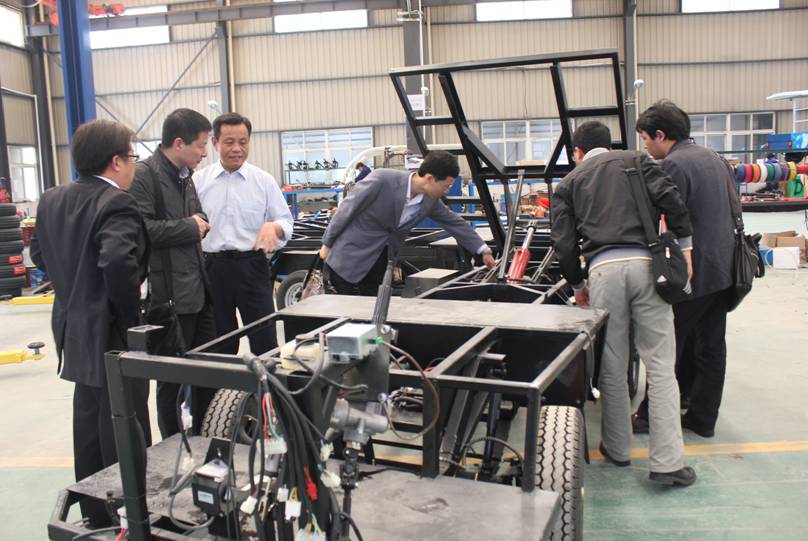 在成立仪式后,由周宏明院长带领,研究院的主要成员参观了沃诚电动车生产基地并和沃诚集团相关人员进行了技术交流。