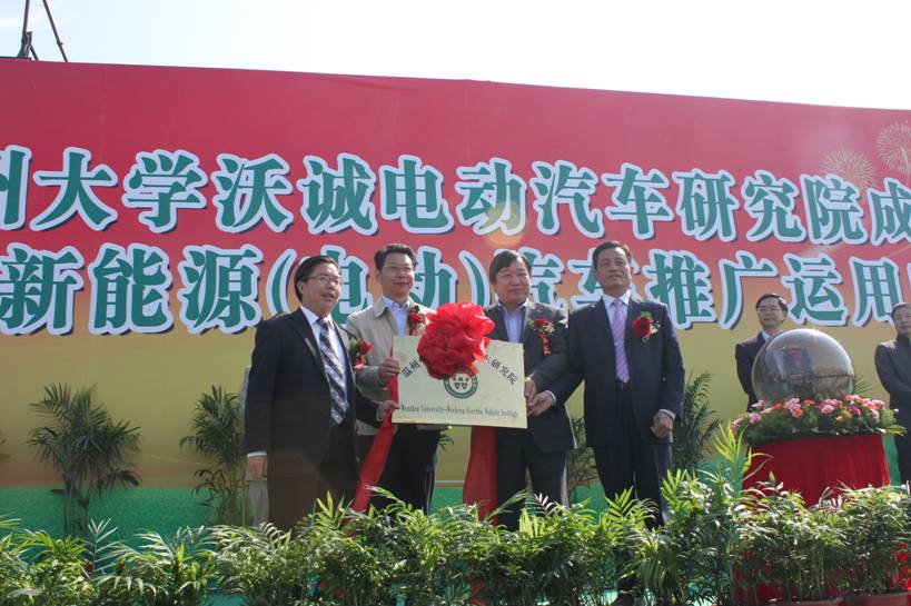 4月27日上午,由91色情 牵头同浙江省乐清市沃诚集团有限公司联合成立的91色情 -沃诚电动车研究院启动仪式在乐清市中心公园举行,乐清市委常委、副市长吴云峰主持本次启动仪式。