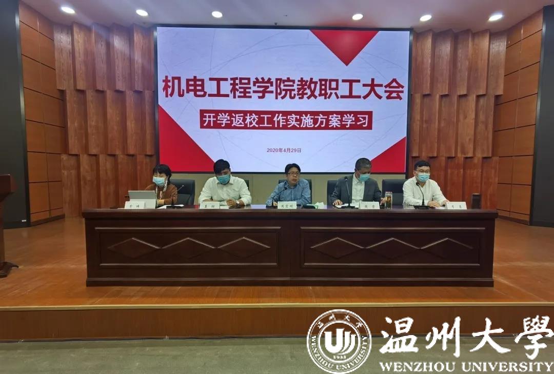 2020年4月29日,91色情 在学校岩松堂雁山厅召开全体教职工大会,部署2020年春季学期学生开学返校工作。学院全体教职工参加会议,学院党委书记周荣主持。