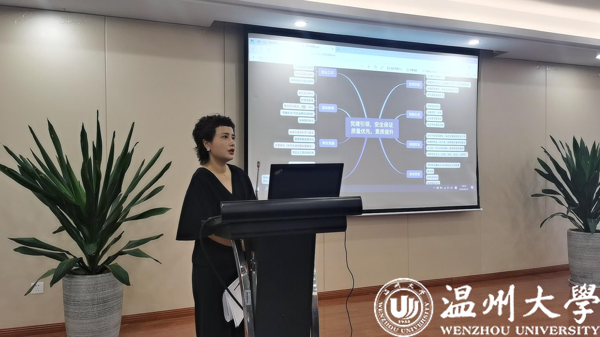 李勇副院长对分管的学科建设、科学研究、人才培养、社会服务等工作新学期的工作安排。黄玮副书记对分管的学生疫情防控、奖勤补贷、就业工作、思政教育、班团建设等工作进行说明。