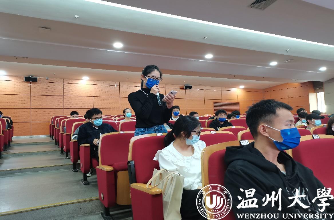 接着进行了讲座的最后一项议程:由同学们自由发言,提出自身疑问。一名大四同学发言问到:面对即将毕业寻找工作的情况,自己有些紧张,询问首先要些做什么准备。何先生答道:调整心态,先把简历写好……一名大一新生问到:如果今后有意前去应聘,那么应聘成功的标准是什么。何先生答道:需要具有过硬专业素养、思路清晰、眼里有光并且对工作充满热情……在接下来的时间里同学们积极发言,何董事长也热情的帮助同学们解决疑惑。