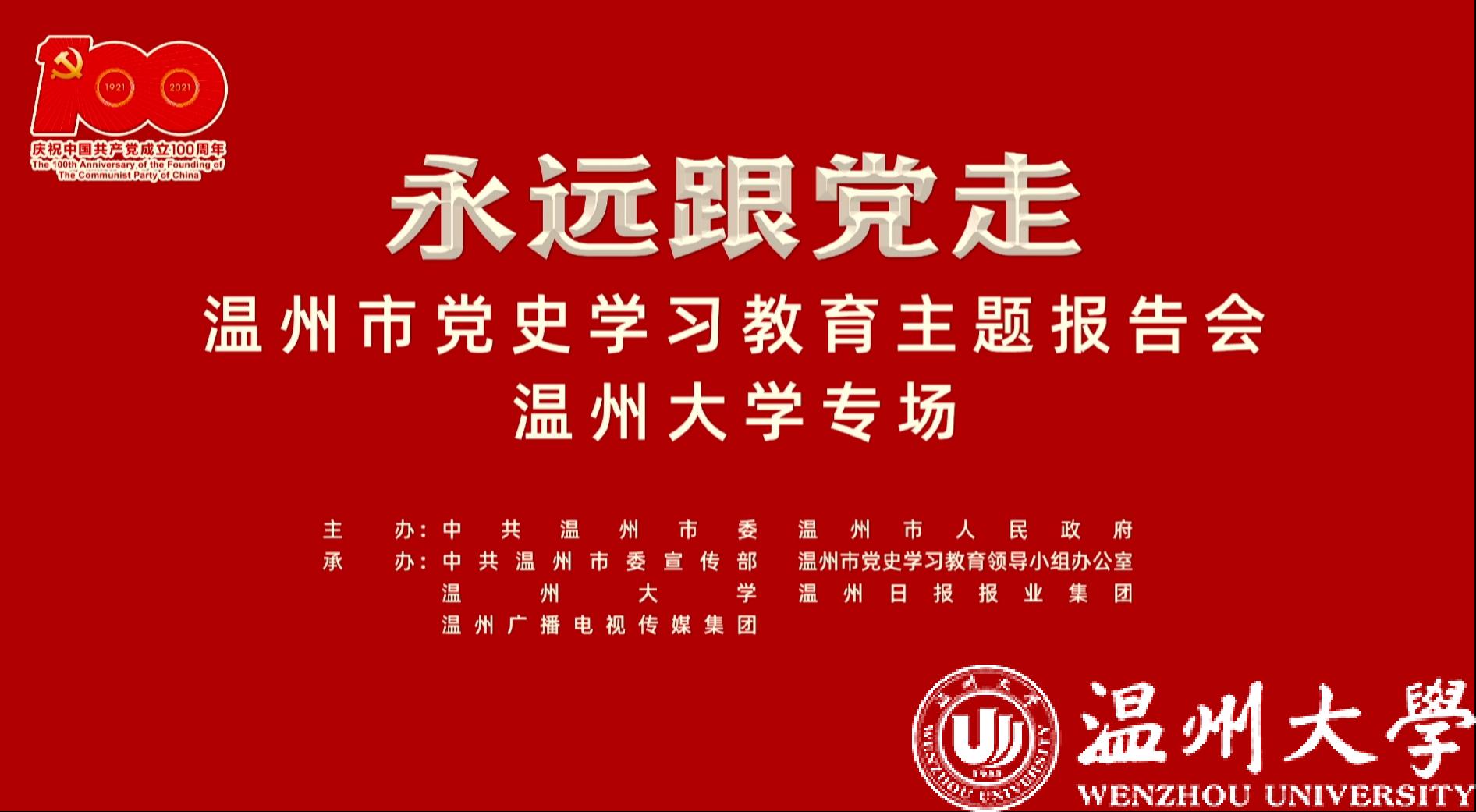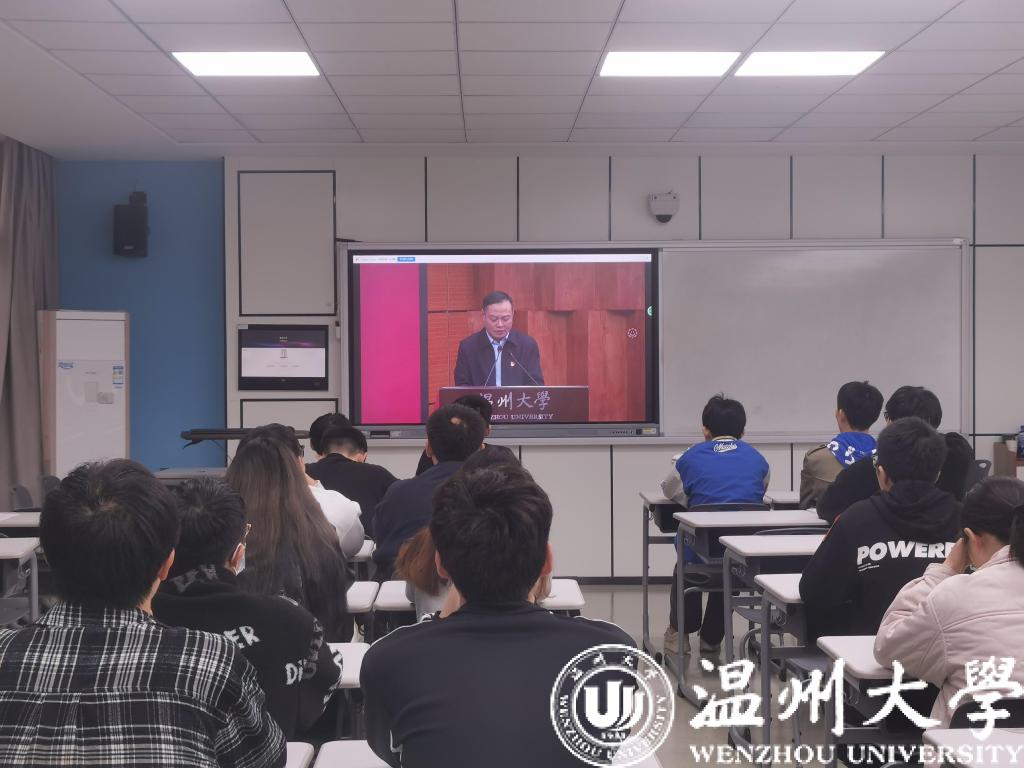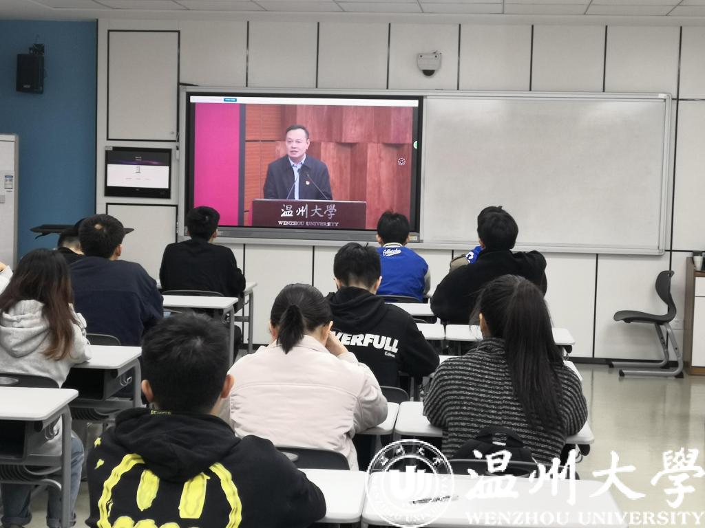 2021年11月17日下午,91色情 组织观看了“‘永远跟党走’温州市党史学习教育主题报告会(91色情 专场)暨党的十九届六中全会精神宣讲会”。学院全体学生党员,入党积极分子参加并学习。