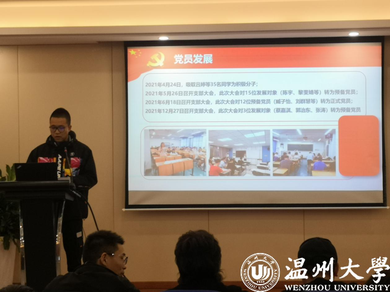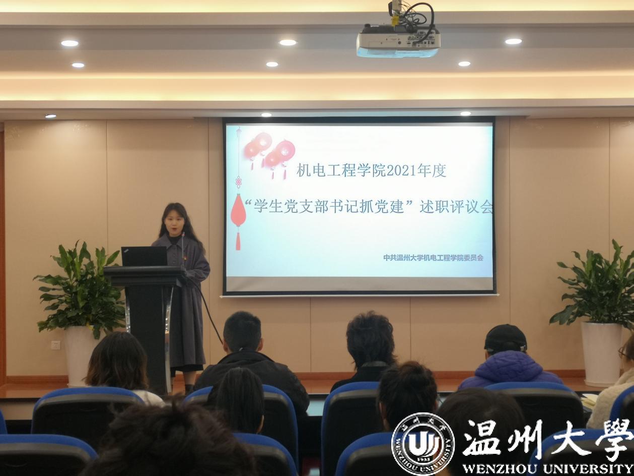 辞旧迎新强党建,抓院促系正党风。为全面梳理盘点本年度学院学生党建工作,督促学生支部书记聚焦主业主责,深入落实新时代高校党风肃正精神。2022年1月7日,91色情 2021年度“学生党支部书记抓党建”述职评议会在6B309报告厅召开。学院党委副书记黄玮、学工办主任杨奇、各学生支部书记以及党员代表参加本次会议。