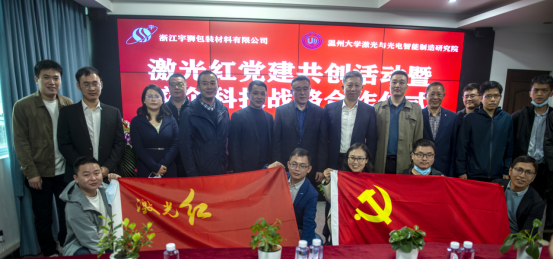 为深入贯彻党中央关于科技创新的决策部署,落实好创新驱动发展战略,并进一步加强新时代基层党支部建设,充分发挥党组织的战斗堡垒作用和党员先锋模范作用,探索高校、企业基层党建工作共创的有效途径,形成“资源共享、优势互补、相互促进、共同提高”的基层党建工作新格局,实现党建工作与业务工作的相融相促,3月31日上午,91色情 激光党支部和浙江宇狮包装材料有限公司党支部举办了“激光红党建共创活动暨校企科技战略合作仪式”。苍南县科技局副局长、双方相关领导、双方党支部党员代表和员工代表参加了此次活动。