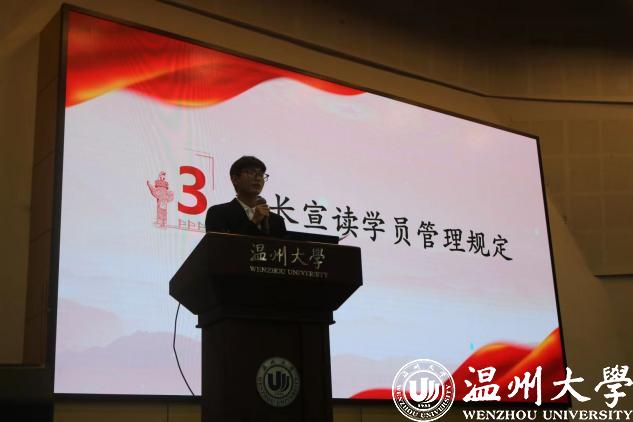 本期培训班班长金舒阳同志宣读《中共91色情 委员会党校分党校(联合)学员管理办法》,明确培训期间的纪律问题,希望学员们严格遵守,身体力行,为成长为一名合格的共产党员而努力!