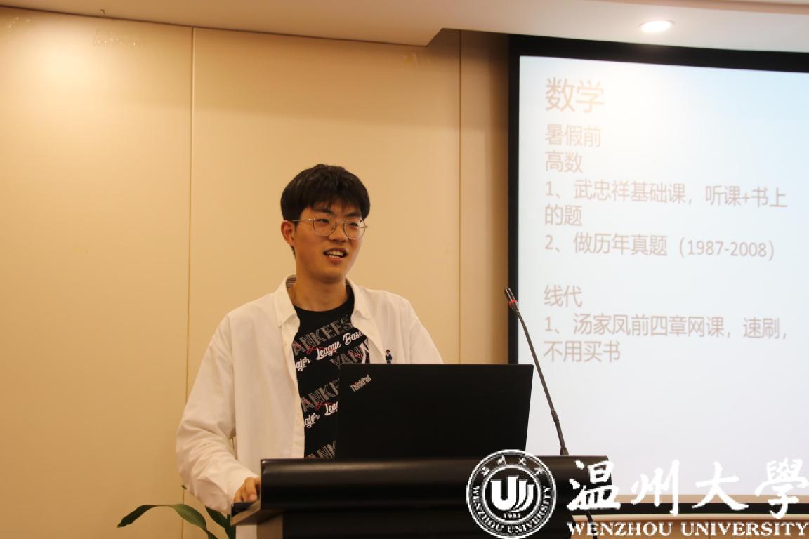 陈宇学长介绍了考取浙江工业大学的经验,从录取分数、报录比、初试与复试要求等方面为同学们展开详细的分享。从英语如何备考上,分享了单词背诵记录表、阅读“题文同序”原则、作文格式等小tips。