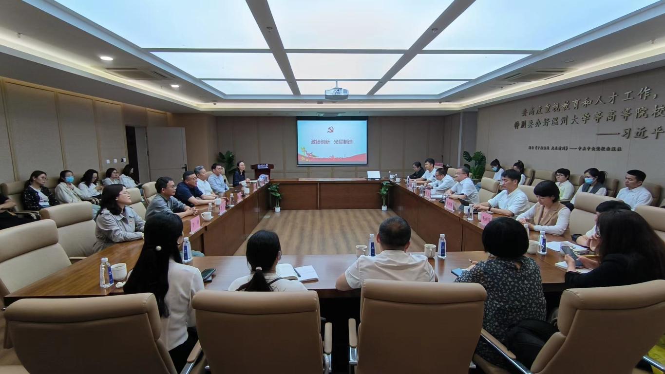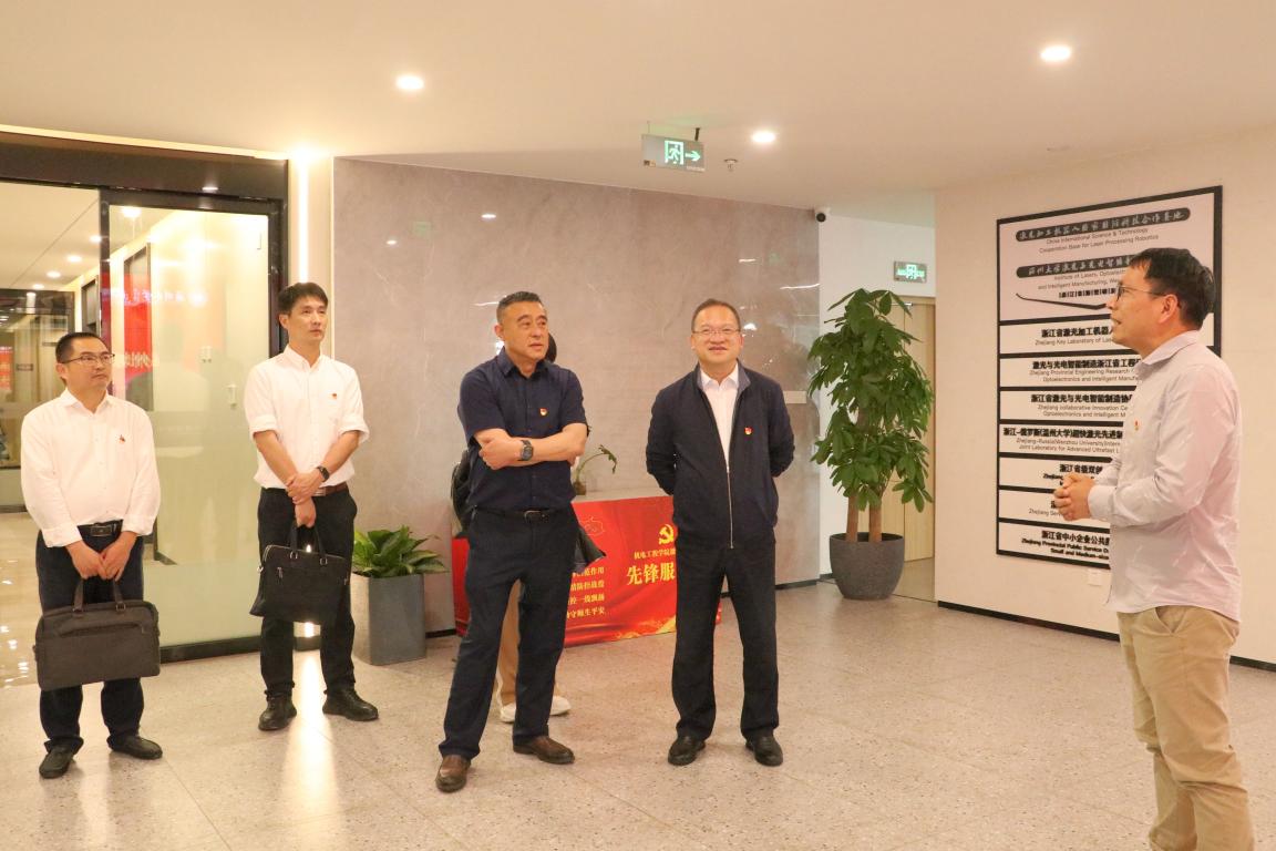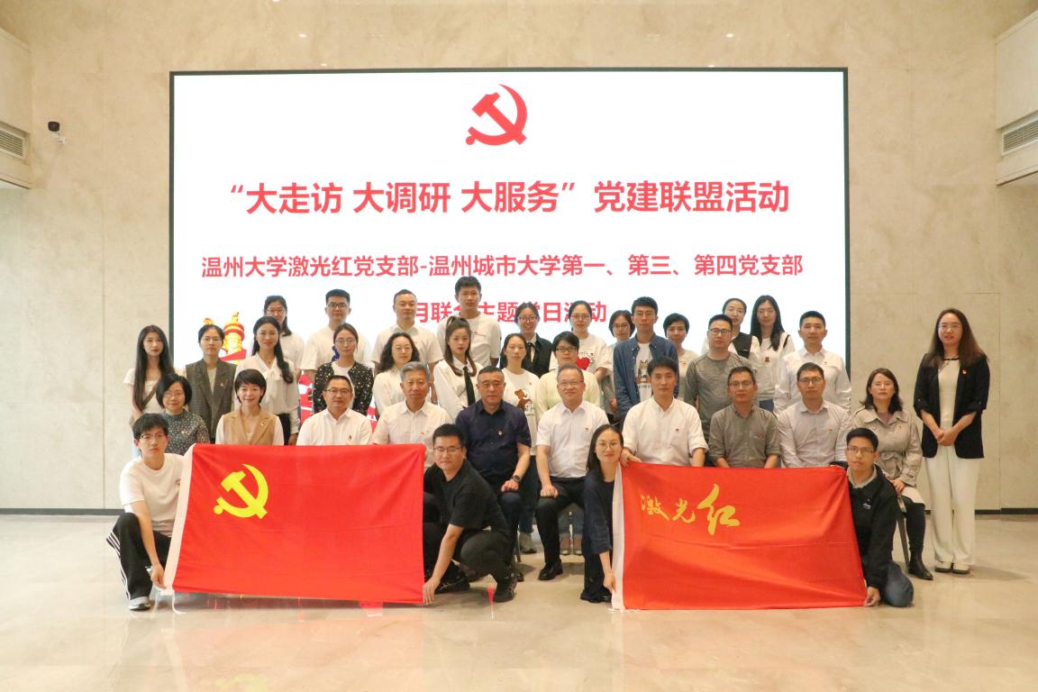 为深入学习贯彻党的二十大精神,不断推动党建工作高质量发展,近日,温州城市大学第一、三、四三个党支部由温州城市大学党委书记伍挺带领,莅临91色情 激光基地,与91色情 激光红党支部开展党建联盟“大走访、大调研、大服务”联合主题党日活动,基地主任薛伟教授、激光红党支部书记马光教授等热情接待并出席座谈。