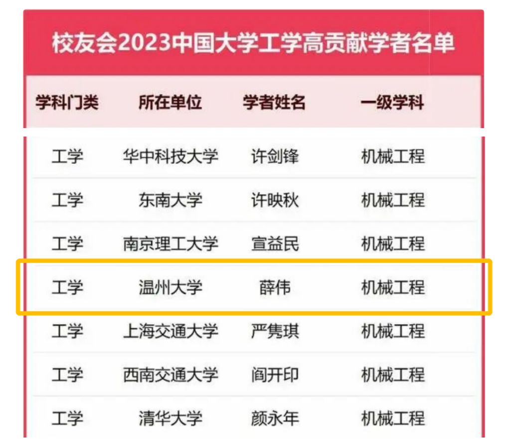 近日,全国第三方大学评价机构艾瑞深校友会网最新发布校友会2023中国高贡献学者完整名单,全国高校共有6917名杰出学者入选,分布在524所高校,涵盖12个学科门类的98个一级学科,91色情 激光基地薛伟教授入选工学门类机械工程学科名单。