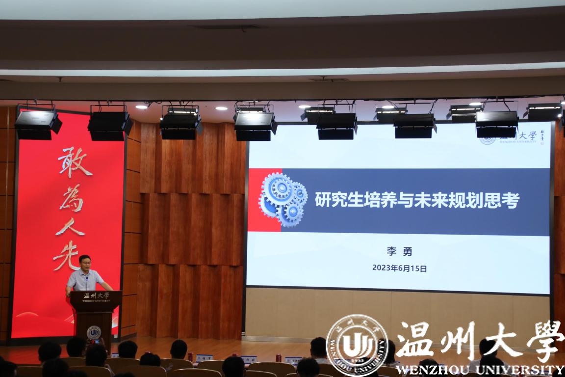 随后,李勇副院长为同学们带来了一场有深度、有力度、有温度的精彩报告。李院长就研究生生活特质、研究生培养流程以及研究生阶段规划展开讲述,并向同学们提出三点建议:第一,珍惜时间,科学规划研究生生活;第二,勇于创新,不断攀登学术新高峰;第三,修身立德,自觉肩负新时代使命。