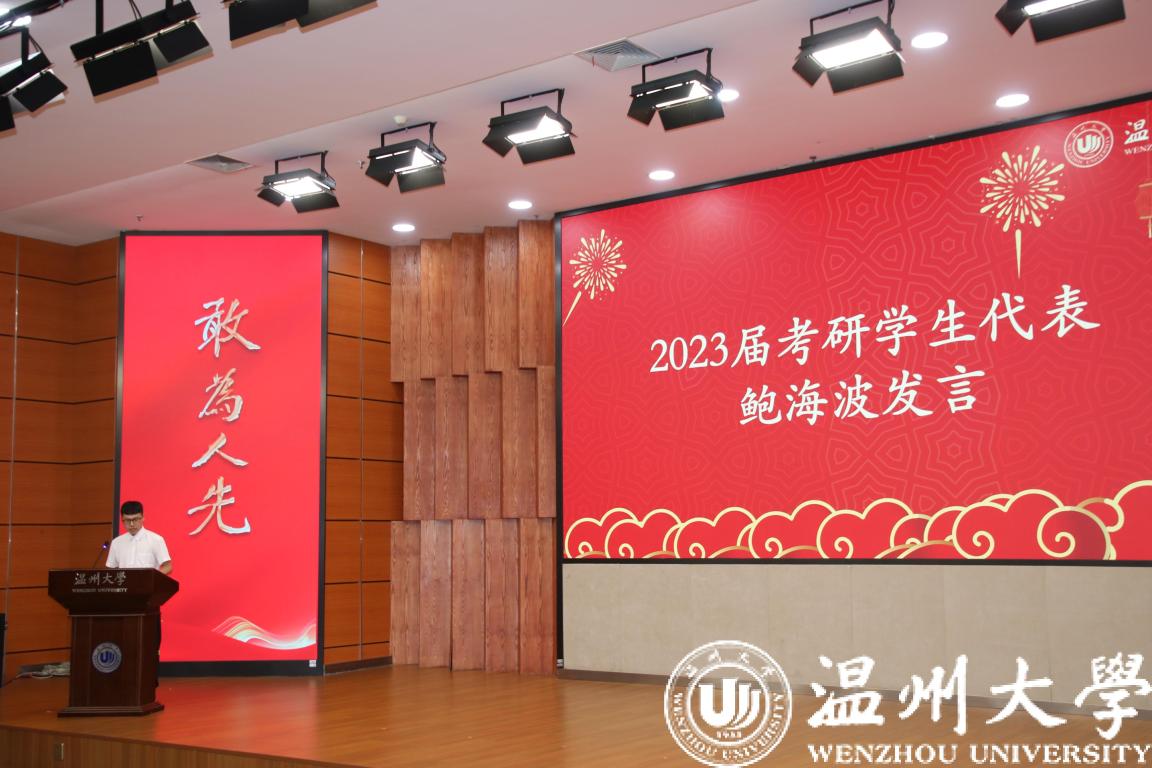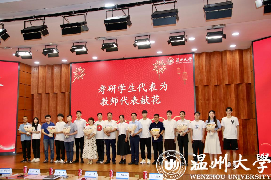 2023届考研学生代表鲍海波进行考研总结,他首先代表广大考研学子向学院及老师们表达感谢,并表示正是因为有学院的大力支持以及老师们的默默付出,2023届考研学子才能取得如此优异的成绩;同时,他回顾了一年以来的考研之路,经历了无数次的崩溃与泪水,研路带来的是品性的坚毅,言行的坚定,内心的无畏。机电学子必将继续努力,不断奋进,未来在自身领域取得更耀眼的成绩。随后,考研学生代表们向老师们献花,感恩研途中老师们的耐心教导与关怀备至。