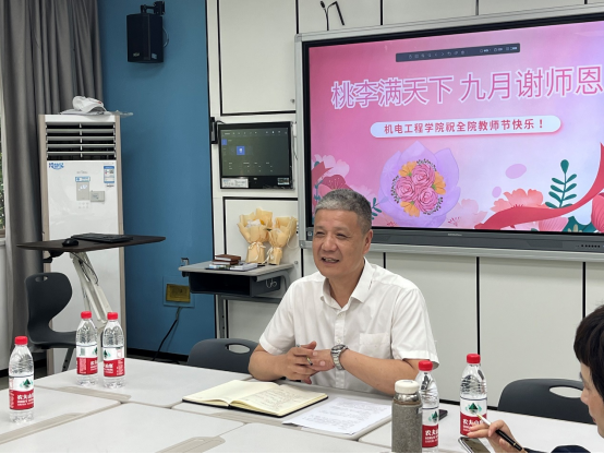 最后,周荣书记向与会教师谈了三点感想:一是要营造尊师重教氛围,为人师表,以身作则。在工作中要做到脚踏实地、吃苦耐劳、爱岗敬业,给学生树立好的榜样;二是建设教育强国,办人民满意教育,学校和学院一定要办出特色,老师们要不断提高教育教学和科研水平,提高教书育人能力;三是牢记初心使命,抗起新时代责任,提高政治站位,快速成长,以前所未有的奋斗姿态投身立德树人、科研报国行动中。