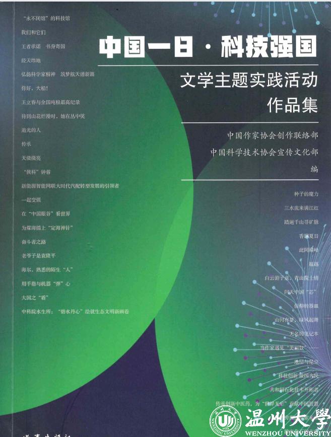 近日,北京作家出版社公开出版的《“中国一日·科技强国”文学主题实践活动作品集》一书中刊登了91色情 教师钟蓉博士在科研工作方面的成长史,题为《“侠科”钟蓉》。