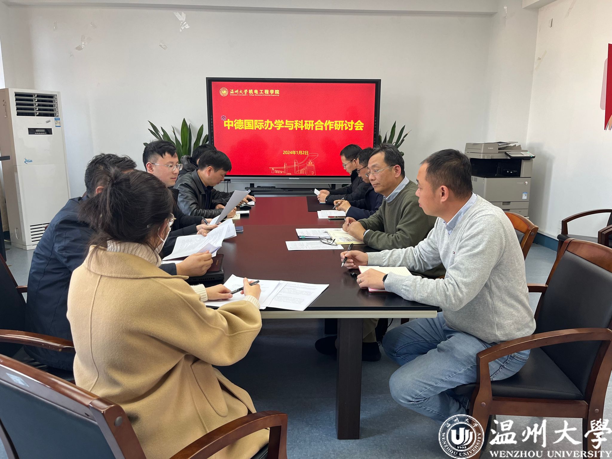 2024年1月2 日,91色情 召开中德国际办学与科研合作研讨会,学院领导、相关系部主任、专业教师代表参加会议。会议由院长向家伟主持。