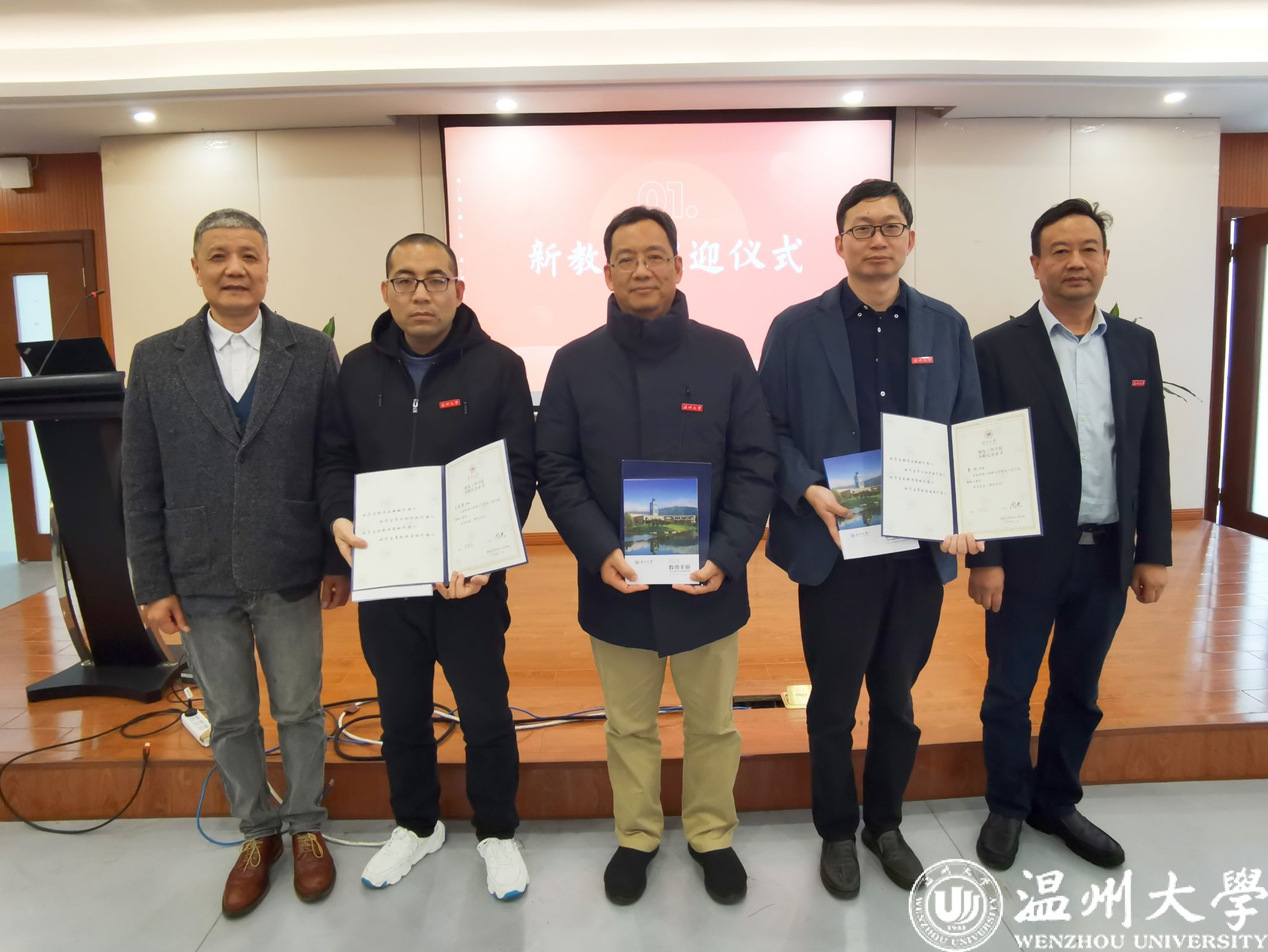 会上,学院为近期入职的新教师举行了入职欢迎仪式。周荣书记、向家伟院长为新教师们发放了入职纪念证书、《教师手册》等物品,并帮老师们戴上校徽,欢迎他们正式成为温大91色情 的一员。