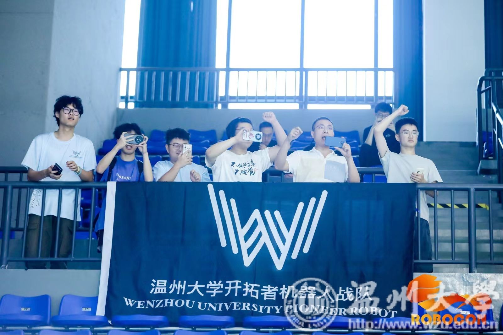 战队成员在观众席加油