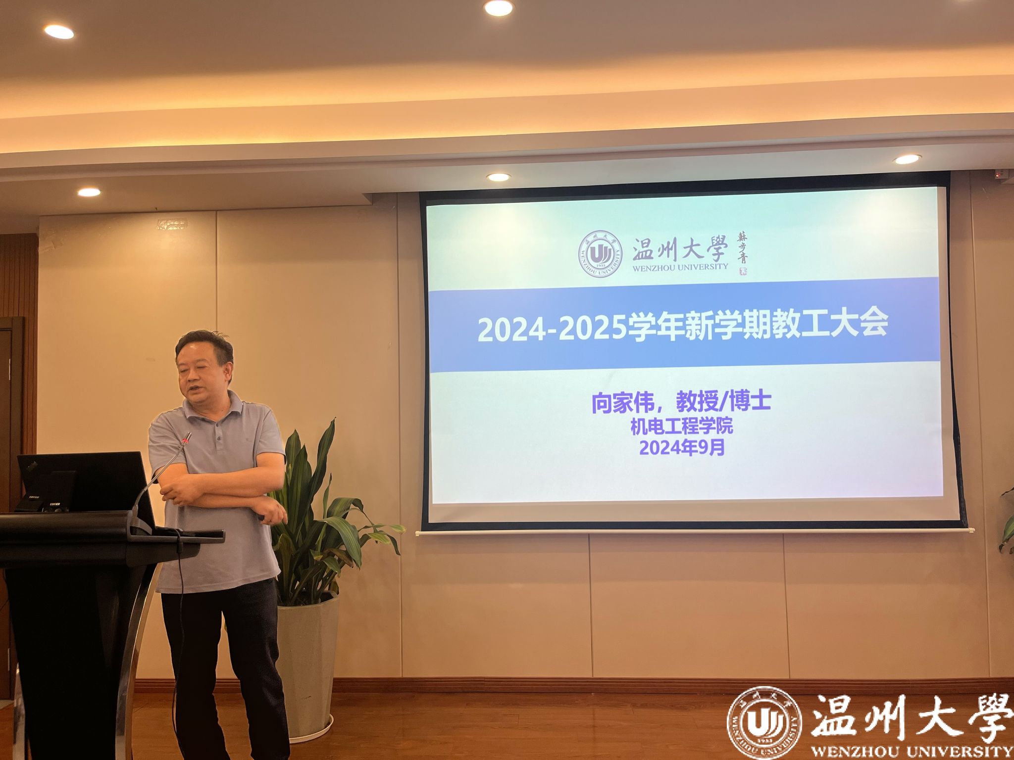 向家伟院长作学院新学期重点工作部署。他回顾了暑期学院在制度规范化建设、实验室搬迁、博士点和浙江省重点实验室申报等方面工作,广大教职工“有暑无假”奋战在教学科研一线,为学院学科专业建设与人才培养水平贡献力量,展现了新时代机电人担当作为、良好工作风貌。面对新的发展任务,他着重就科研项目申报、学科建设、人才培养等方面工作进行了部署,强调全体教职工工作要有勇攀高峰勇气,凝心聚力、团结协作共同排除万难、加油工作、健康生活,为学院各项工作迈上新台阶、取得新成效、实现新突破贡献智慧和力量。