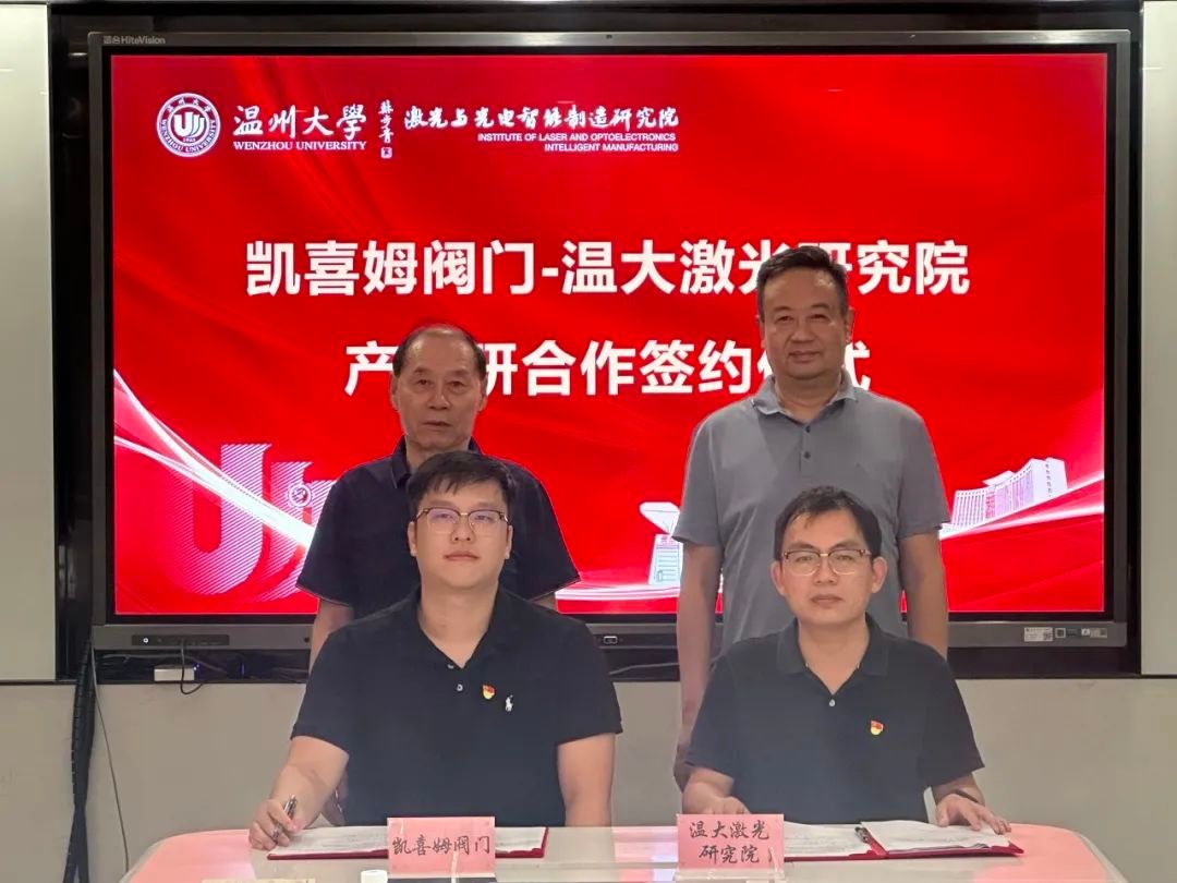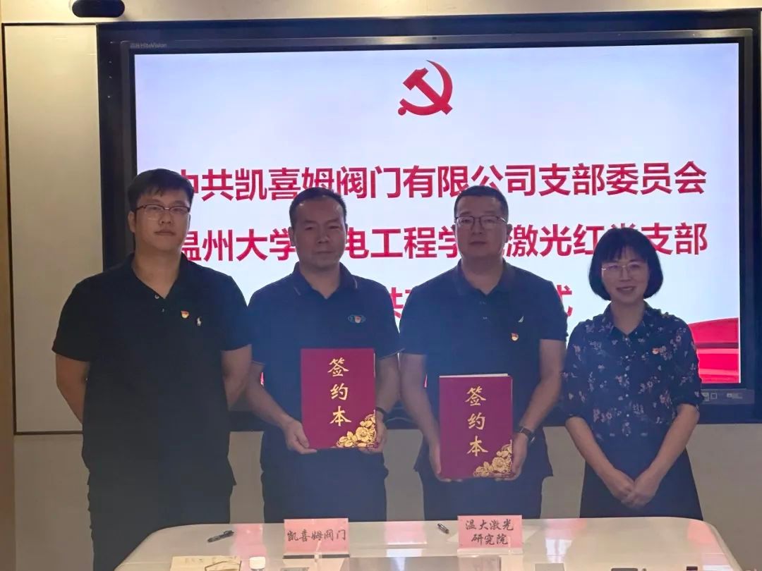 为全面贯彻新时代党的建设总要求,围绕温州市委“强城行动”战略部署,共同发挥校企基层党组织和党员作用,构建“校企地”党建共建工作新格局。10月18日,机电学院激光红党支部与凯喜姆阀门有限公司就党建共建与产学研合作达成了深度共识,成功举行了签约仪式。