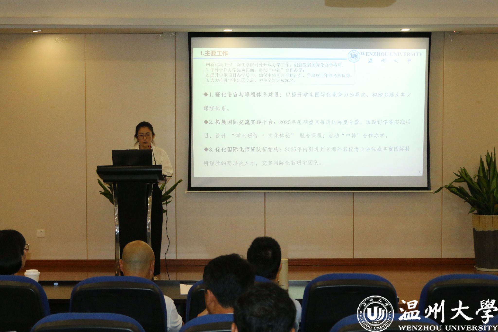 瑞安研究生院学术副院长章诚就惠师惠生相关政策作详细讲解,希望双方加强在人才培养、服务地方等方面沟通交流与合作。希望为学院高水平人才培养和科技创新团队打造提供平台和政策支持。