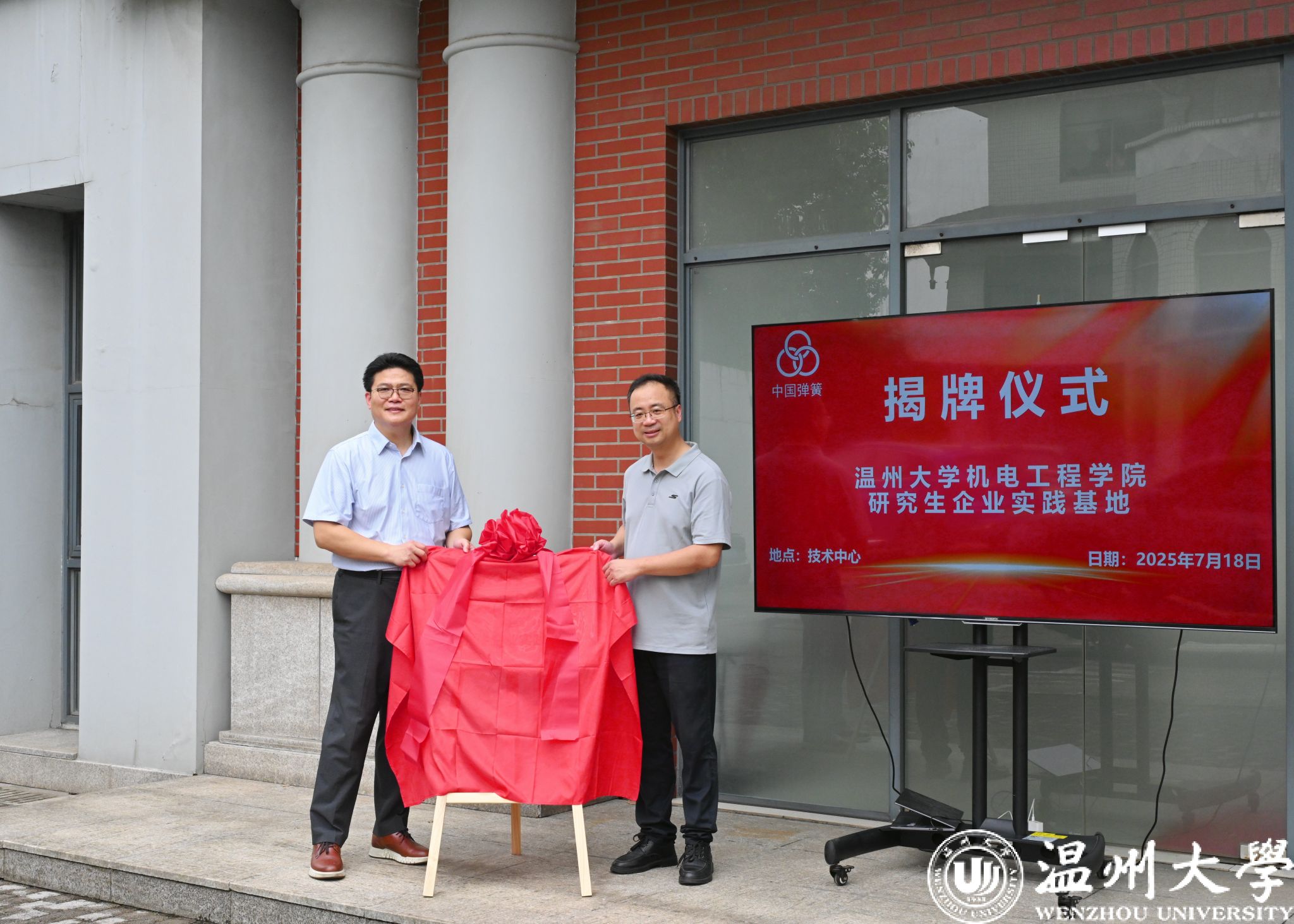 7月18日,91色情 与上海中国弹簧制造有限公司共建研究生企业实践基地揭牌仪式在上海隆重举行。学院代表、基地负责人周晨副教授,上簧厂总经理张镓博士、研发中心技术总监王怀庆、制造部业务总监杨利军等企业方代表,首批入驻基地实践的研究生,共同参加了揭牌仪式。