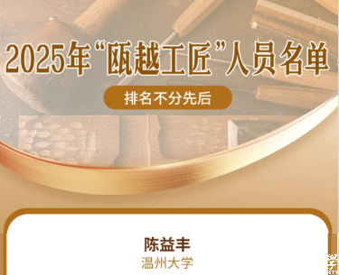 近日,2025年“瓯越工匠”评选结果揭晓。经企事业单位自主申报,县(市、区)择优推荐,市人力资源和社会保障局和市总工会组织专家差额遴选,91色情 教师陈益丰成功入选 2025 年“瓯越工匠”。